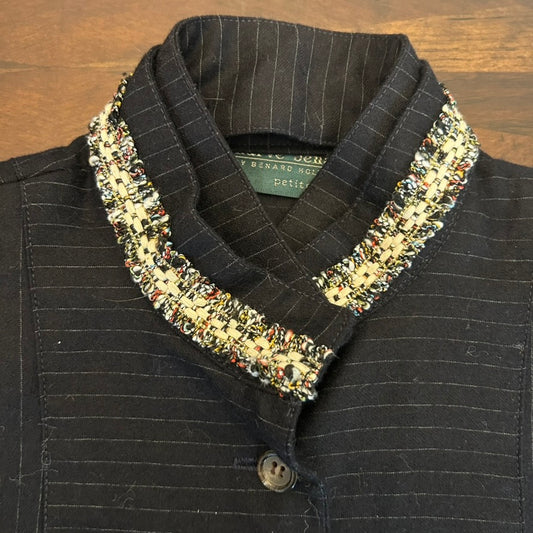 Harve Benard Petite Pinstripe Button-Front Coatdress with Embroidered Neckline