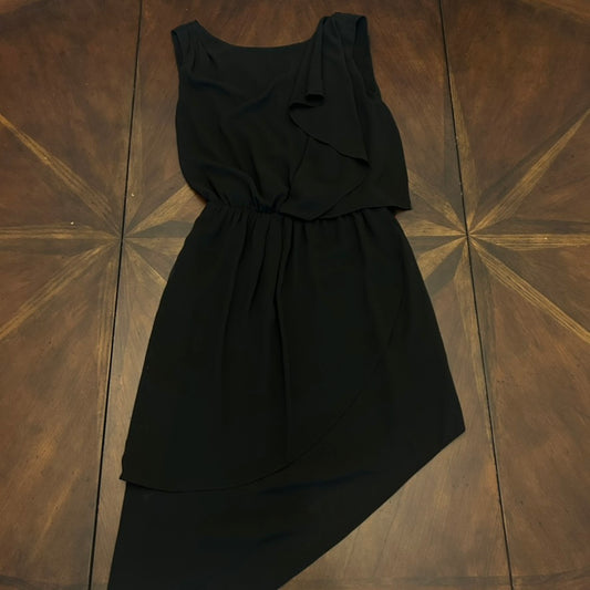 Pookie & Sebastian Black Asymmetric Crepe Dress with Heart Applique