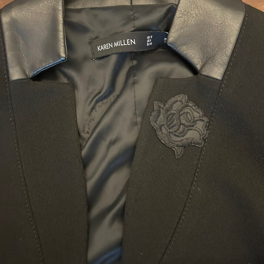 David Meister Black Jersey Dress with Hand-Painted Leopard Scarf Ring