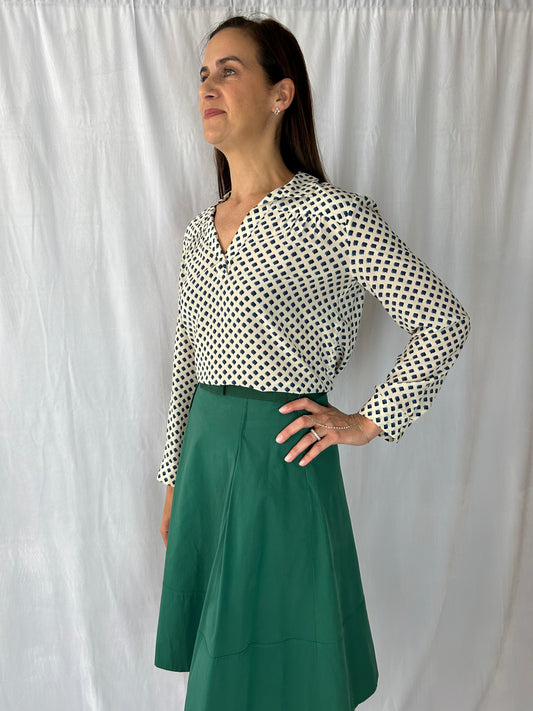 Gerard Darel Ivory with Navy Leaf Print Split Collar Blouse