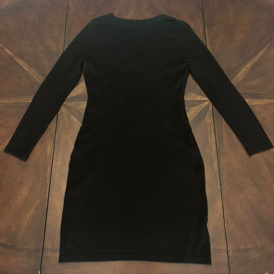 Black Calvin Klein Sweater Knit Dress with Lace-up Collar