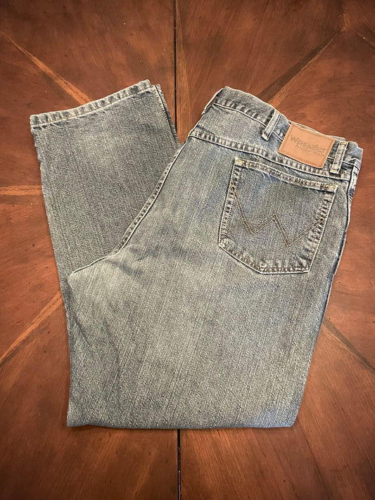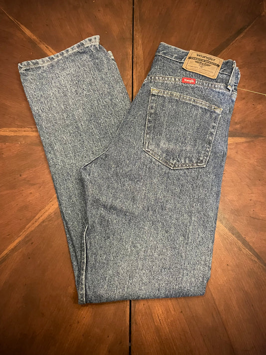 Wrangler 5-Pkt Relaxed Leg High-waisted Blue Jean with Red Label