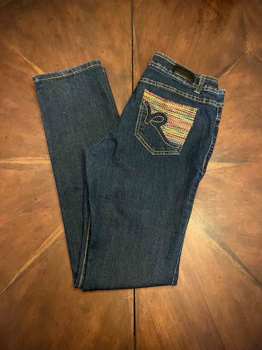 Levi Strauss Low-Rise Straight Leg Dark Blue Jean with Pocket Embroidery