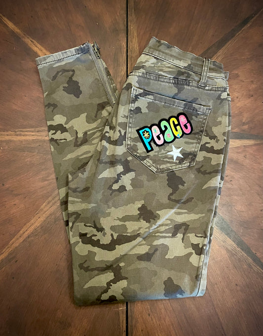 Ashley Mason Skinny Camo Cargo Skinny Pant with Star Patches