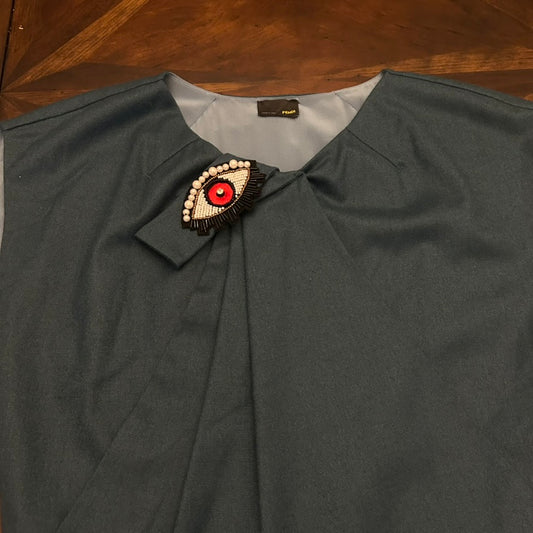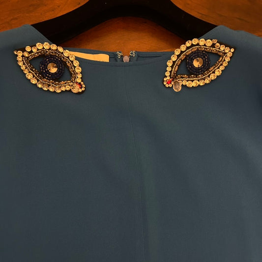 Fendi Turquoise Cap-Sleeve Dress with Eye on Collar