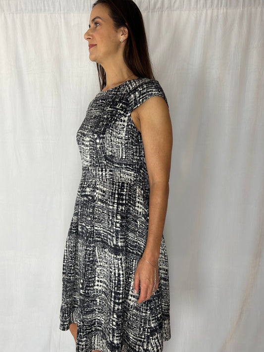 Carolina Herrera Black & White Printed Cap-Sleeve Dress