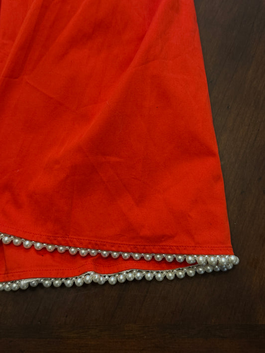Weill Red Short-Sleeve Tie-Front Dress with Added Pearl Trim
