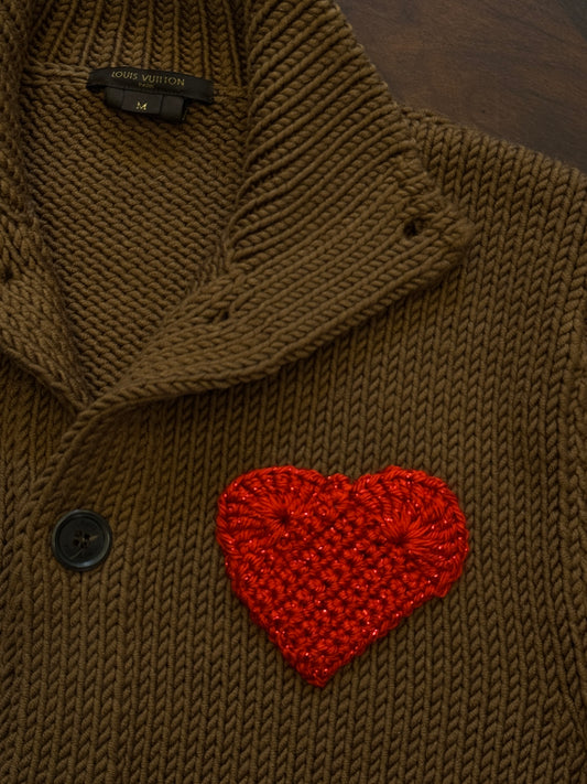 Louis Vuitton Vintage Long-Sleeve Cardigan with Crochet "LOVE" and Heart