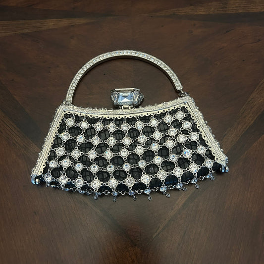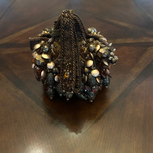 Mary Frances Beaded Shoulder Handbag with Onyx/Turq/Tiger Eye Clasp Button