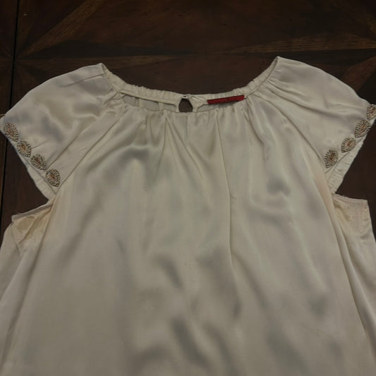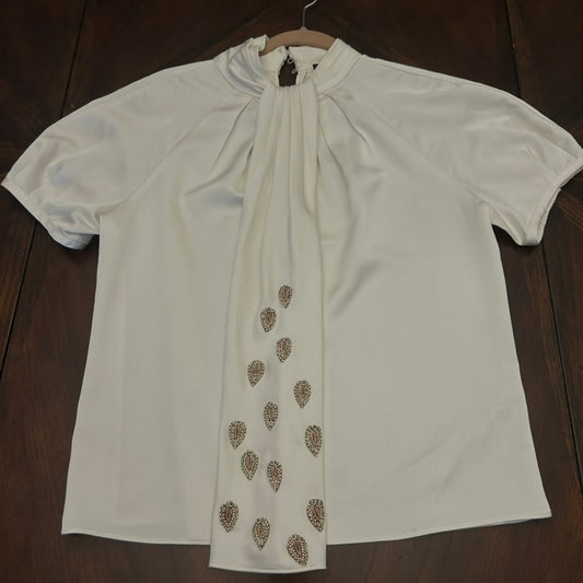 J. Crew Ivory Short-Sleeve Blouse with Beading on Flap Tie