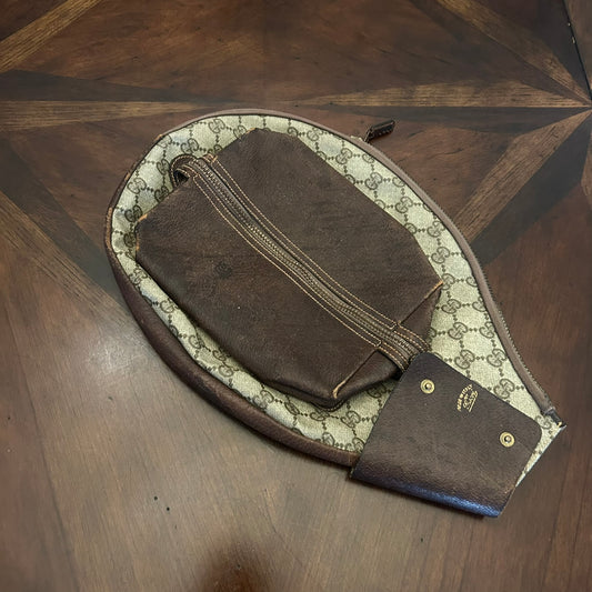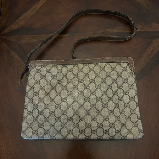 Gucci Brown Logo Vintage 1980s Shoulder Handbag with Exterior Pocket