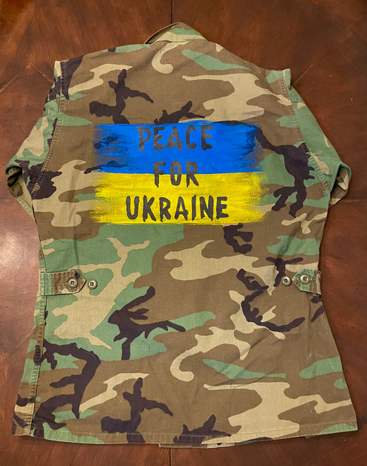 PEACE FOR UKRAINE artwork Hand-Painted on Camo Military Jacket