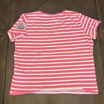 Pink and White Striped Polo Ralph Lauren T-Shirt with Vintage Patch