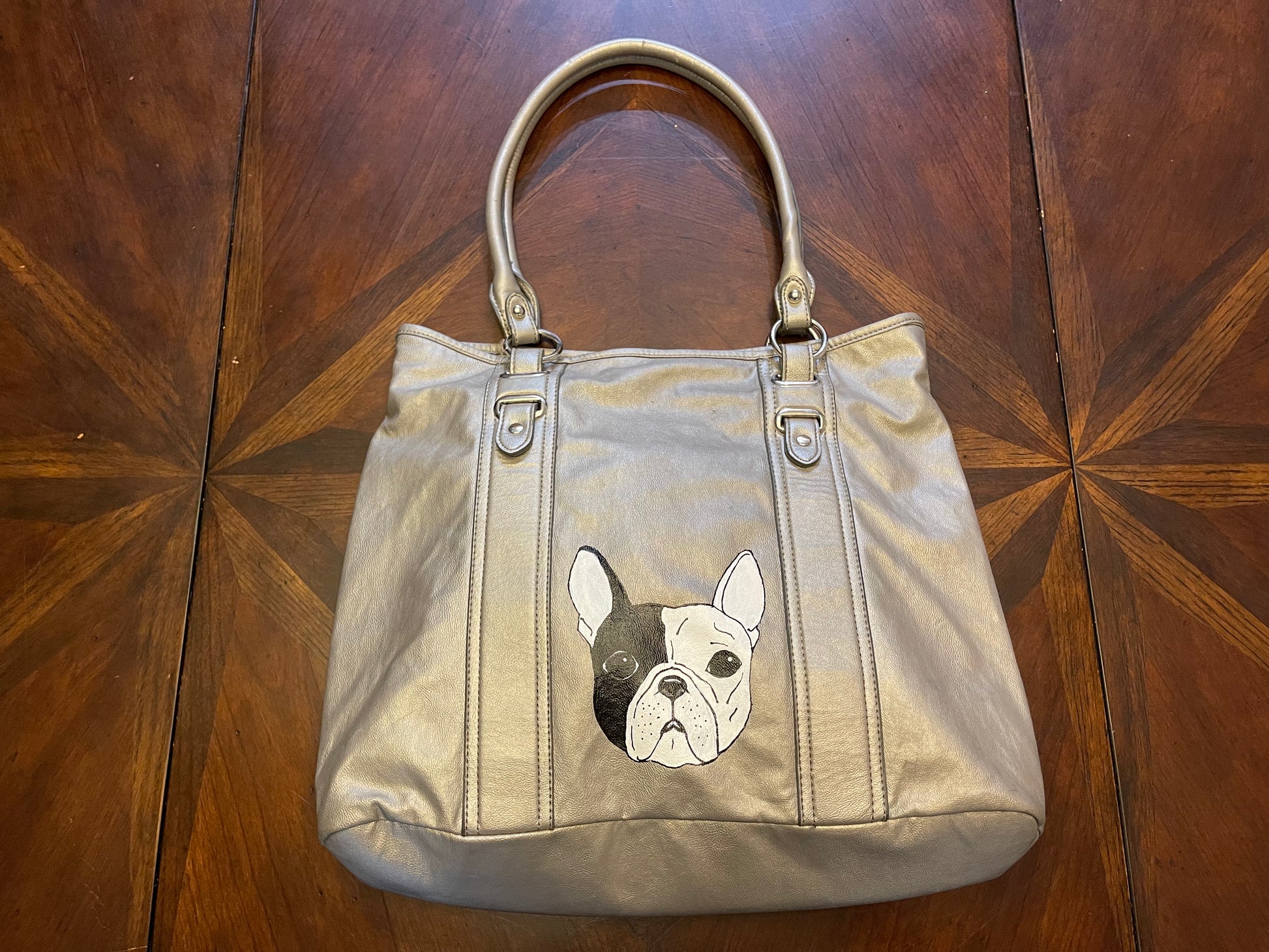 Apt 9 Metallic Handbag with Handpainted Bulldog Artwork