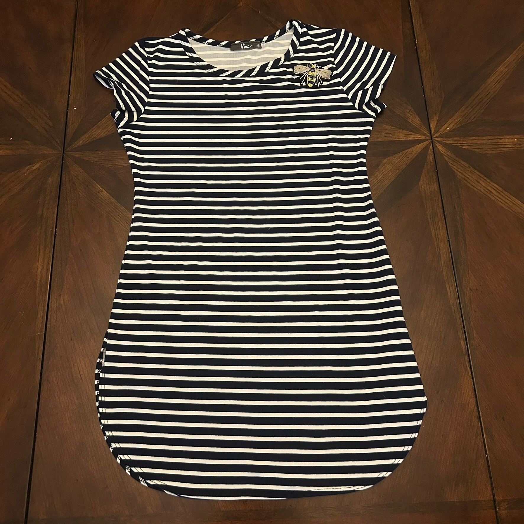 Knit Striped Nvy/White Shirt-Dress with Bee Appliqué