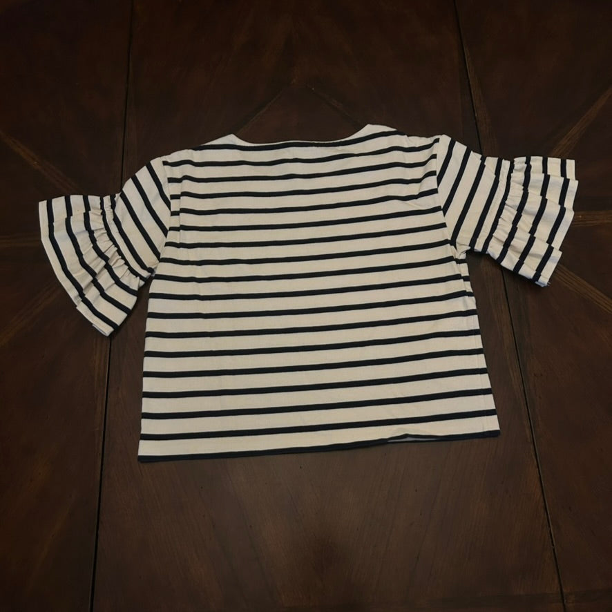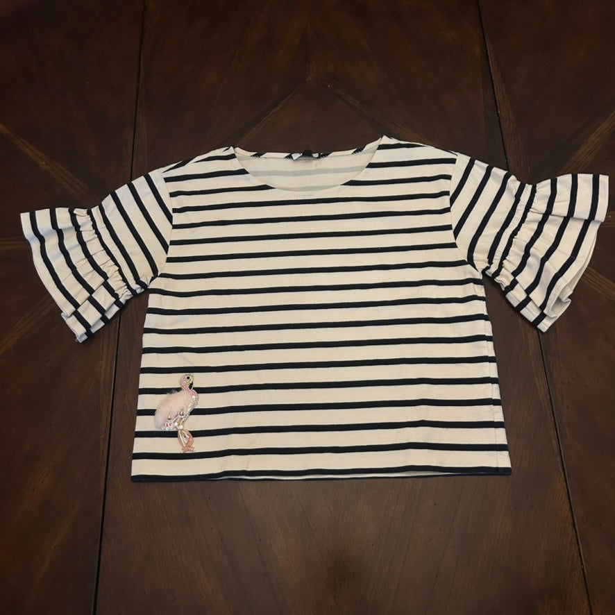 J.Crew Nvy/White Striped Shirt with Flamingo Appliqué and Bell Sleeves