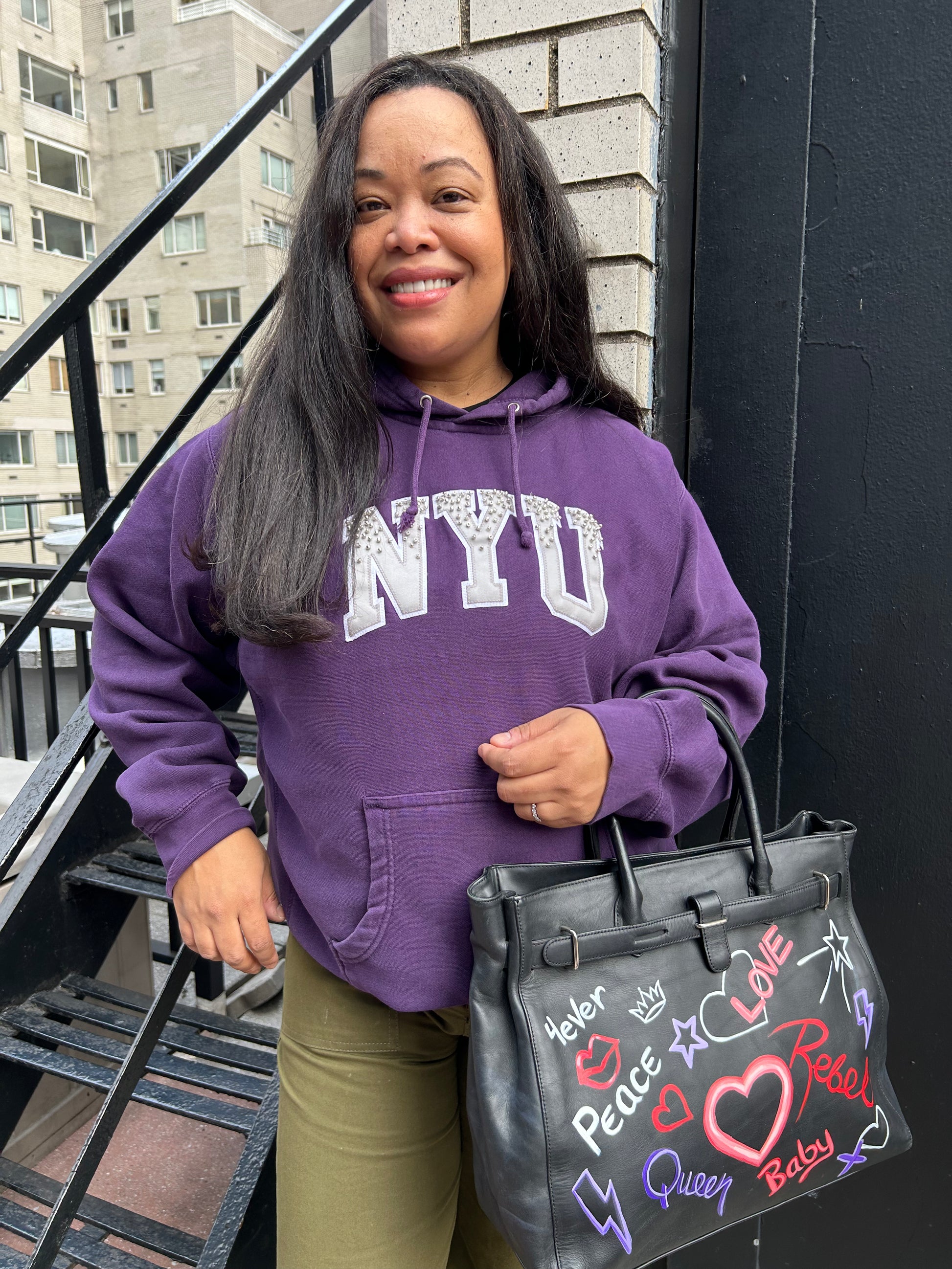 Hand-Painted Graffiti Art Leather Bag