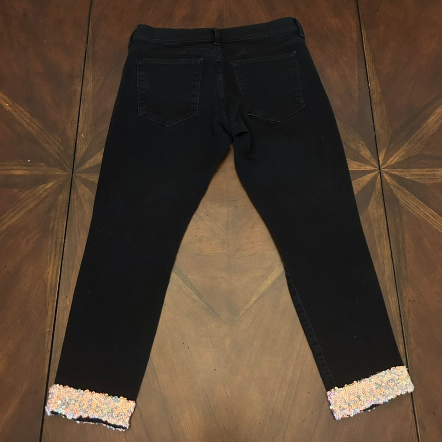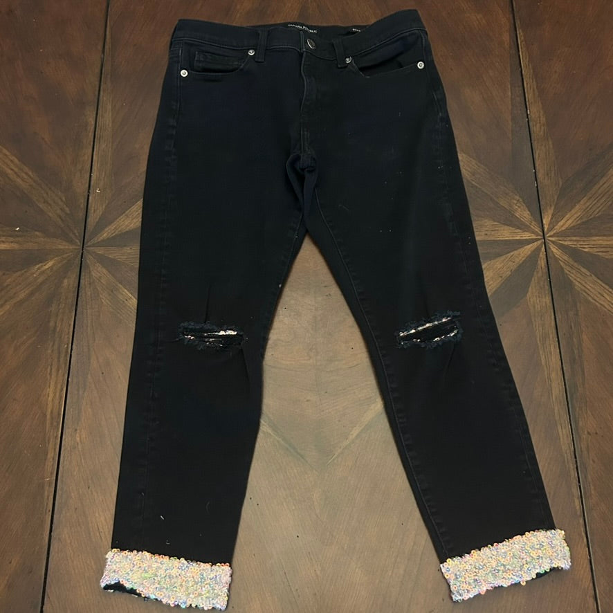 Petites Black Banana Republic Ripped Skinny Jeans with Sequins at Ankles