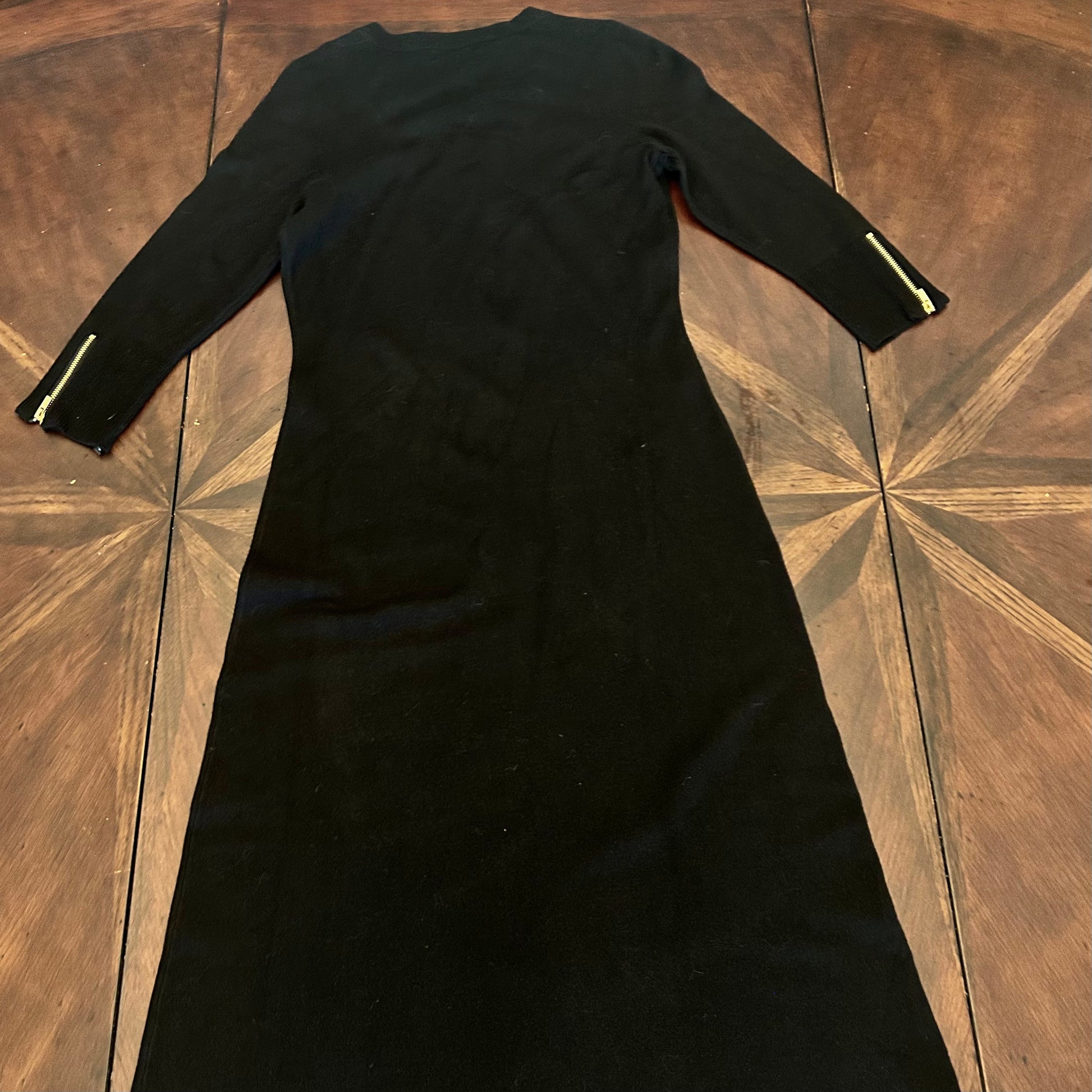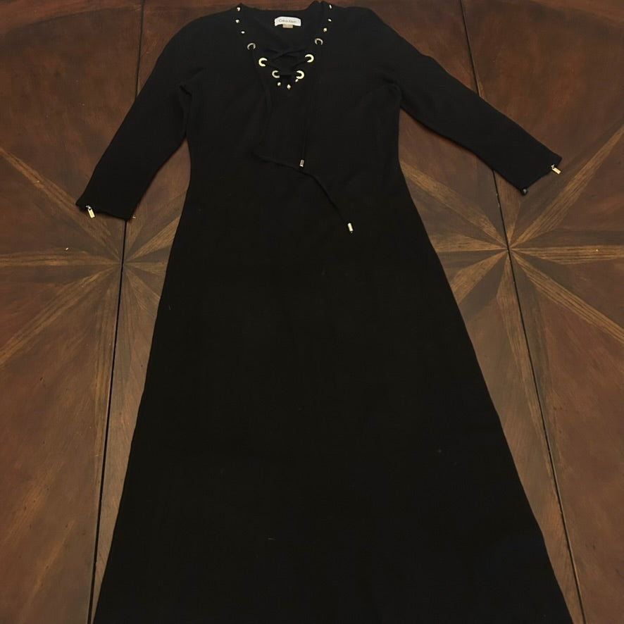 Black Calvin Klein Sweater Knit Dress with Lace-up Collar