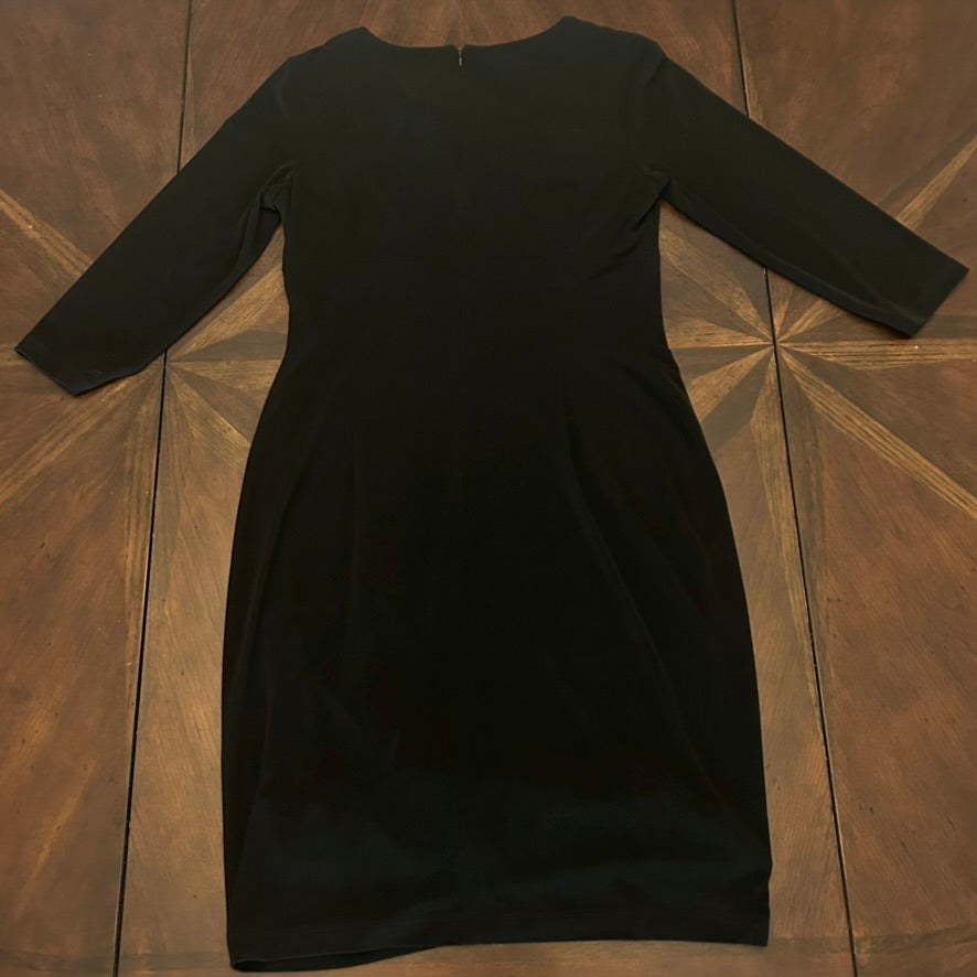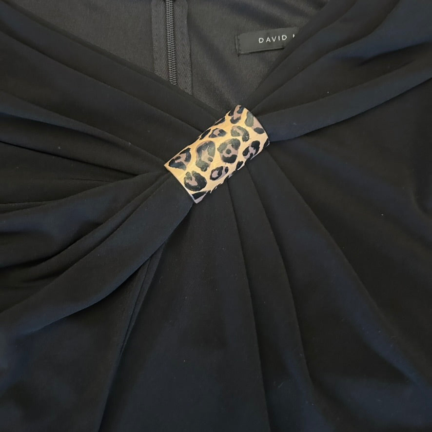 David Meister Black Jersey Dress with Hand-Painted Leopard Scarf Ring