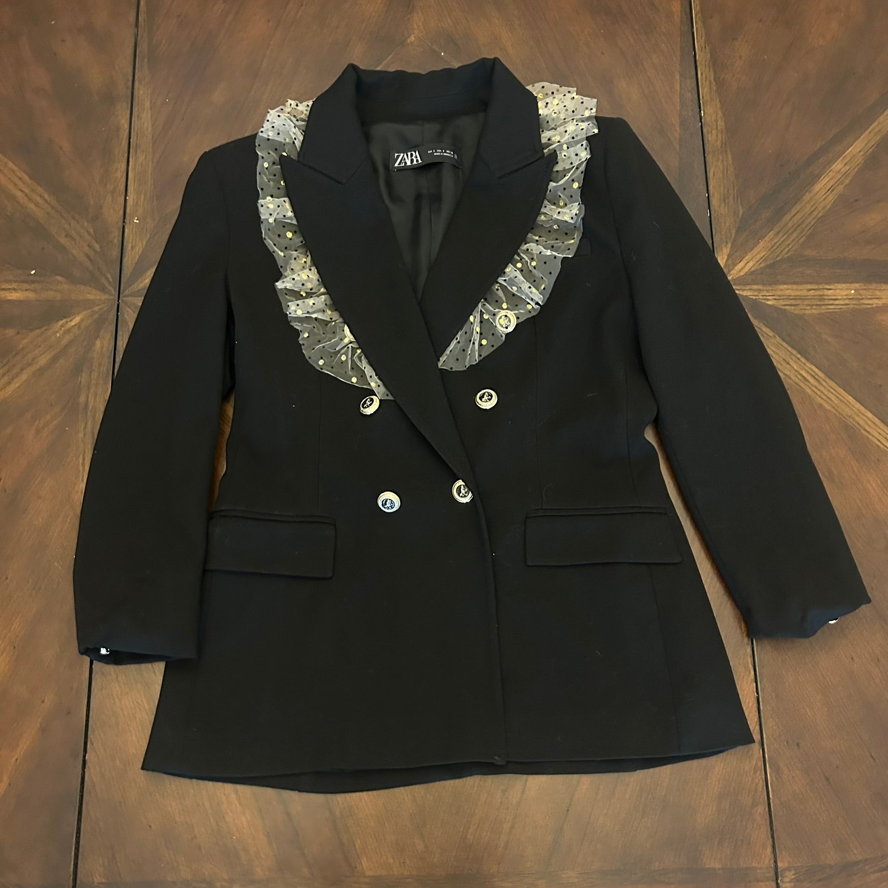 Zara Black Double-Breasted Blazer with Metallic Dotted Trim