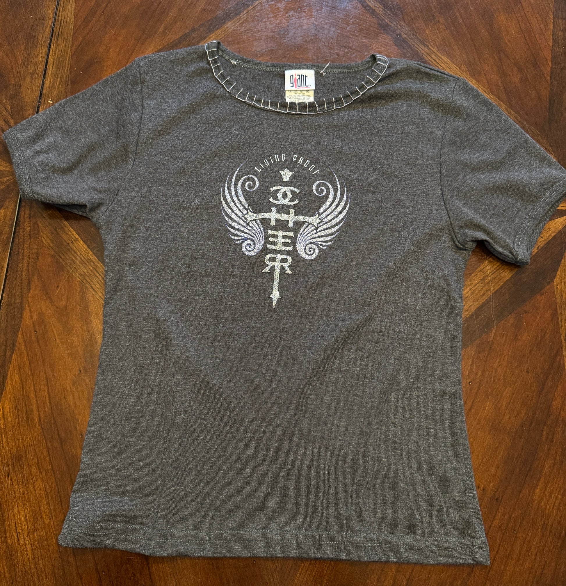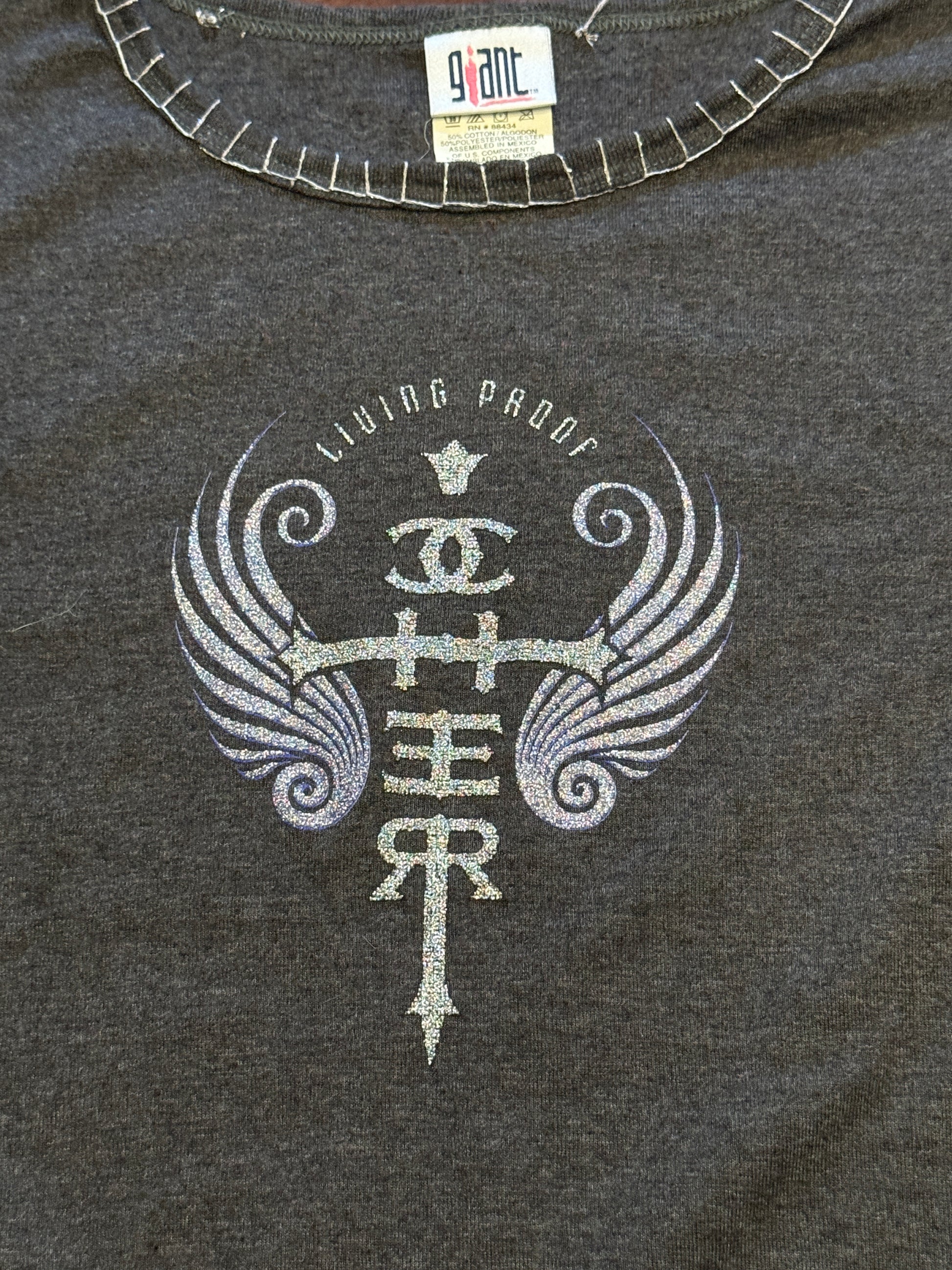 Cher Living Proof Grey Concert Tee with Hand-embroidered Trim