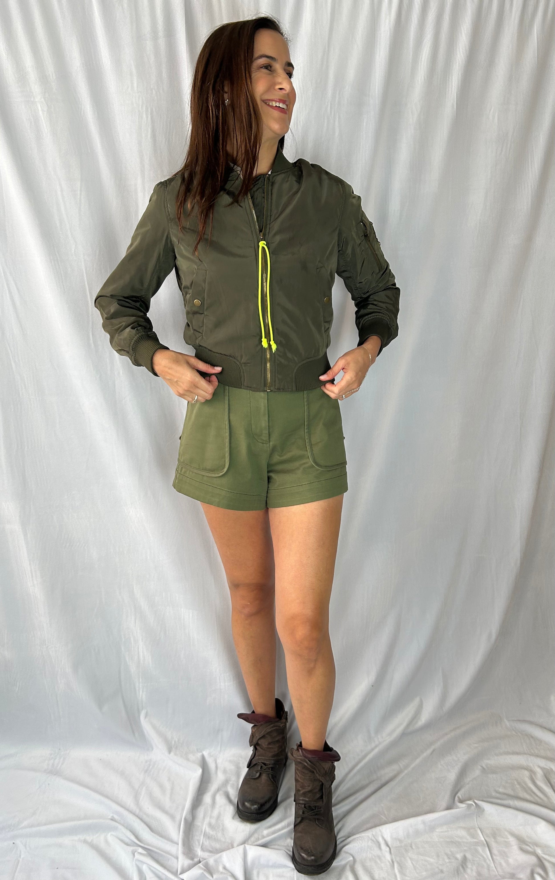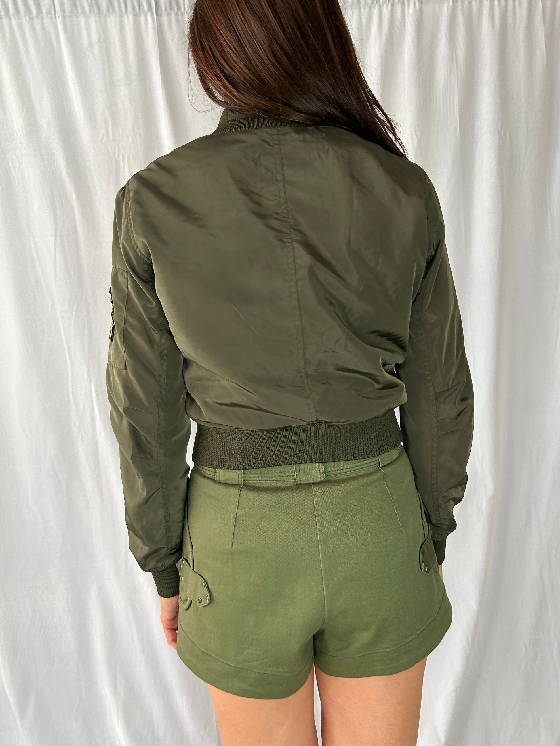 Aqua Olive Bomber Zip-Front Jacket with Patch