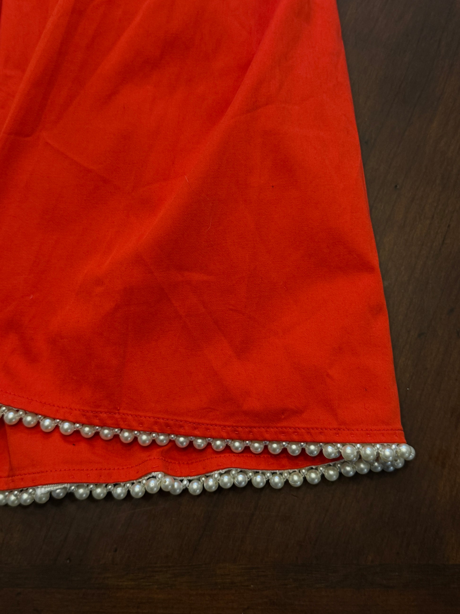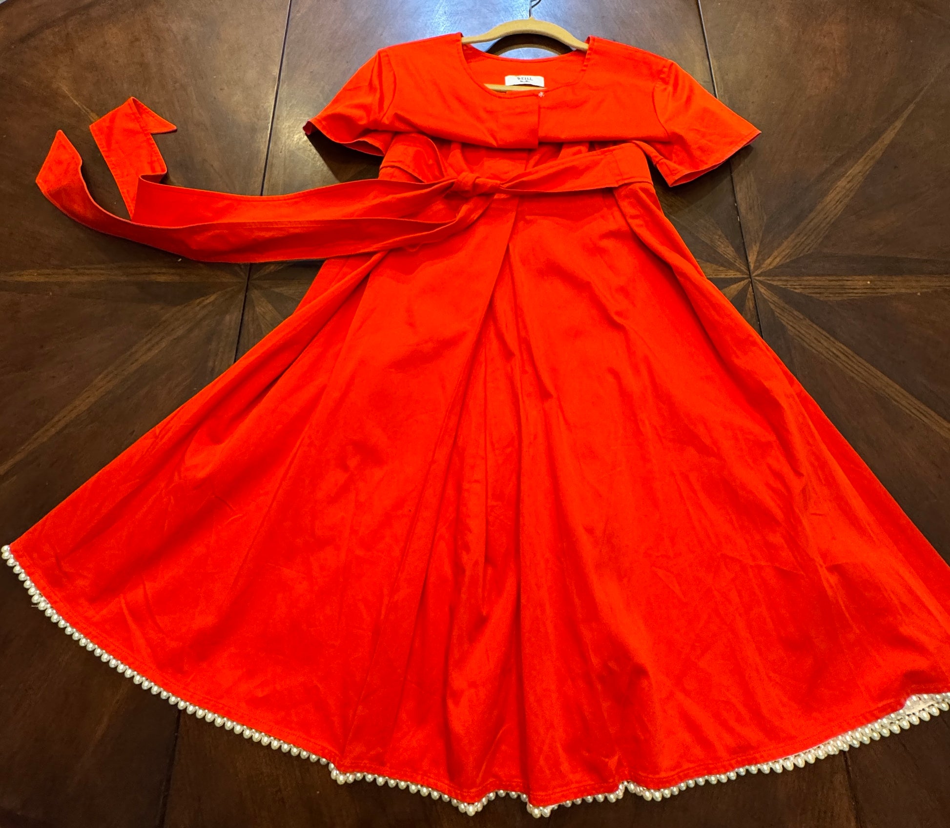 Weill Red Short-Sleeve Tie-Front Dress with Added Pearl Trim