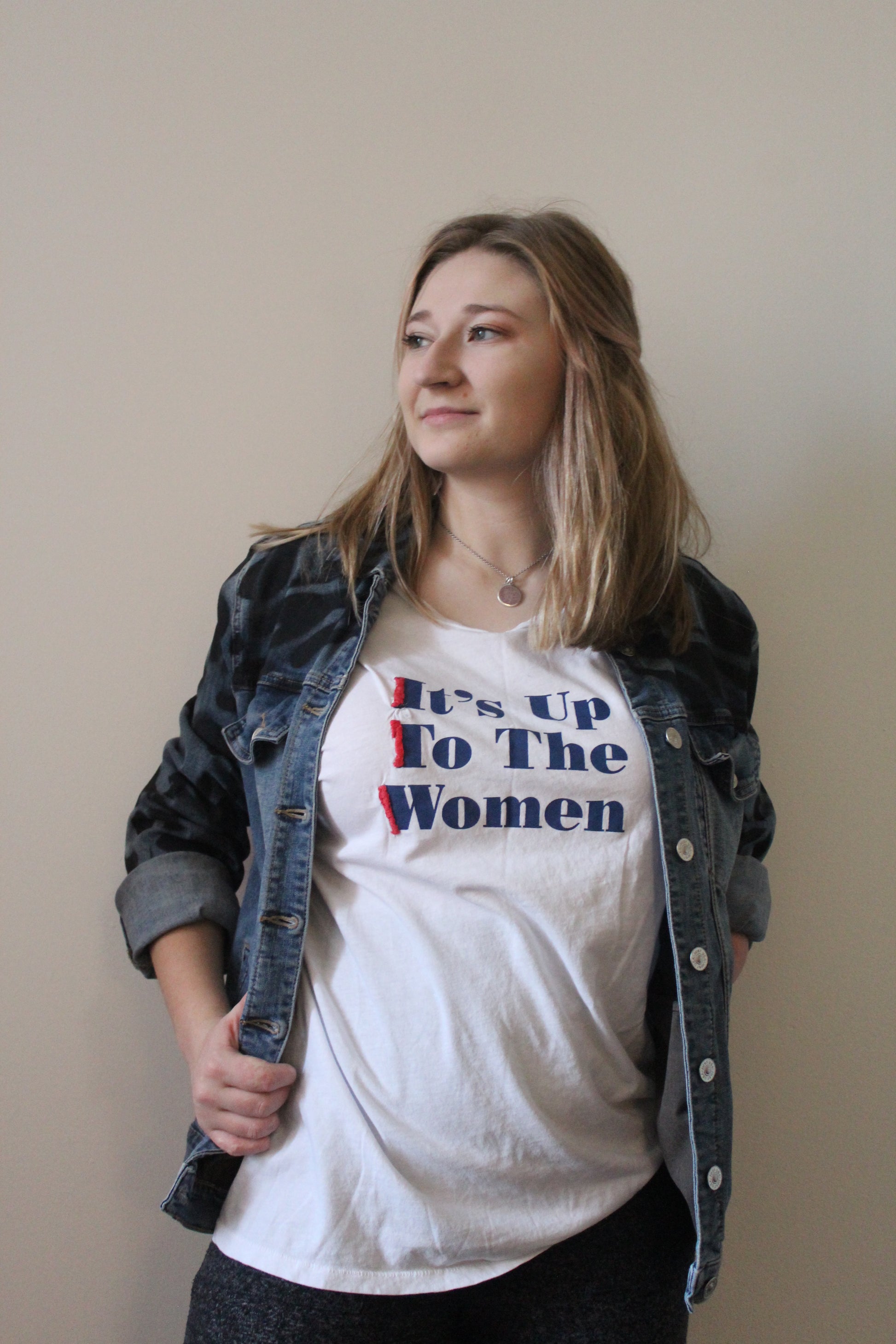 "It's Up to the Women" Graphic Tee with Hand Embroidery