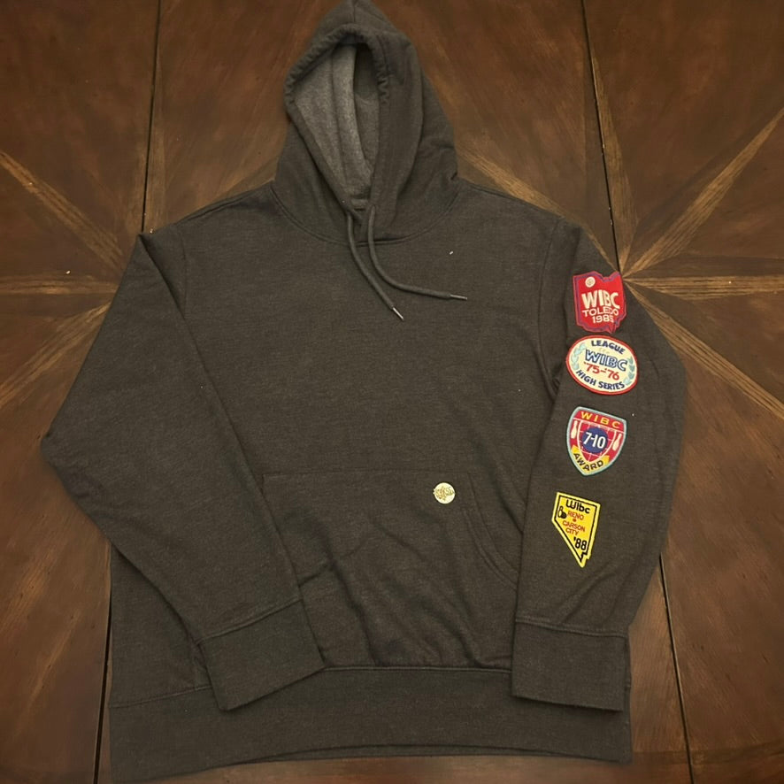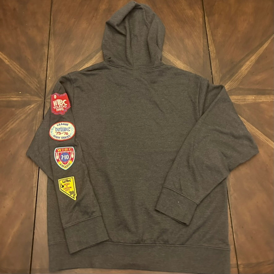 Fleece Hoodie in Black with Vintage Patches & Pin