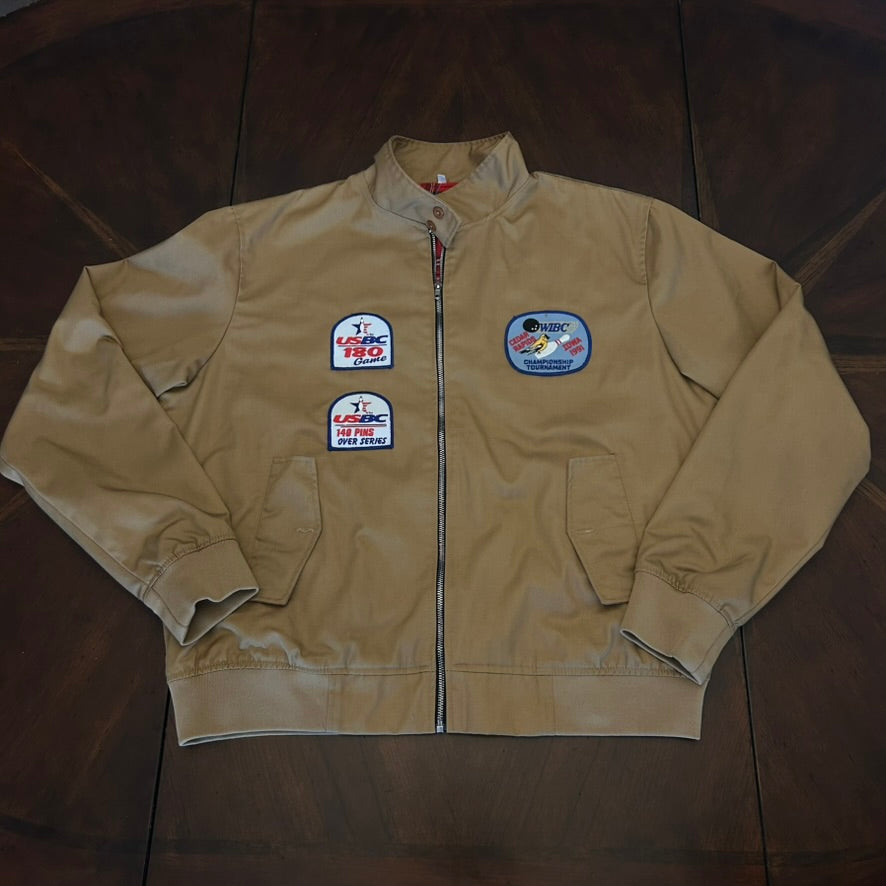 "Bob Walt" Khaki Zip Front Jacket with Vintage Patches