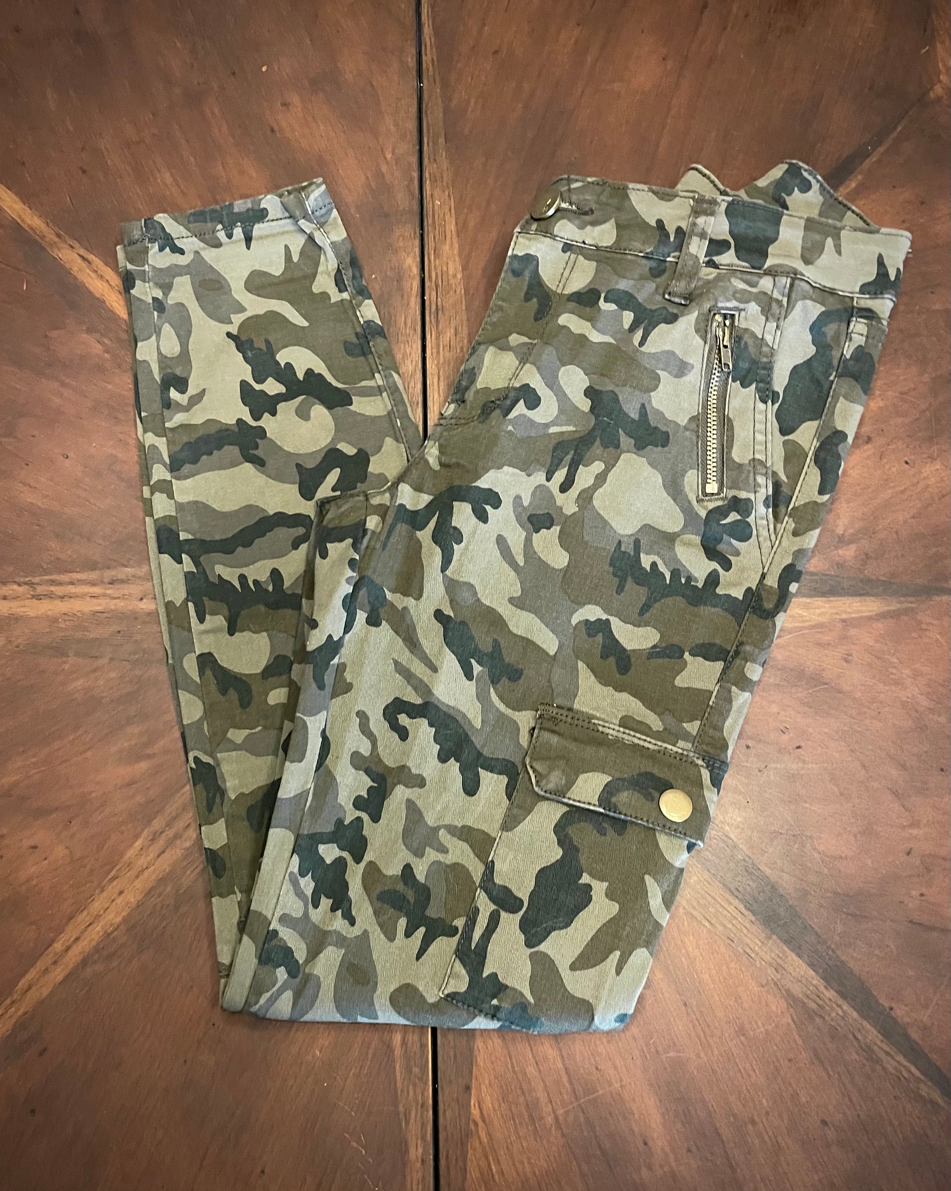 Ashley Mason Skinny Camo Cargo Skinny Pant with Star Patches