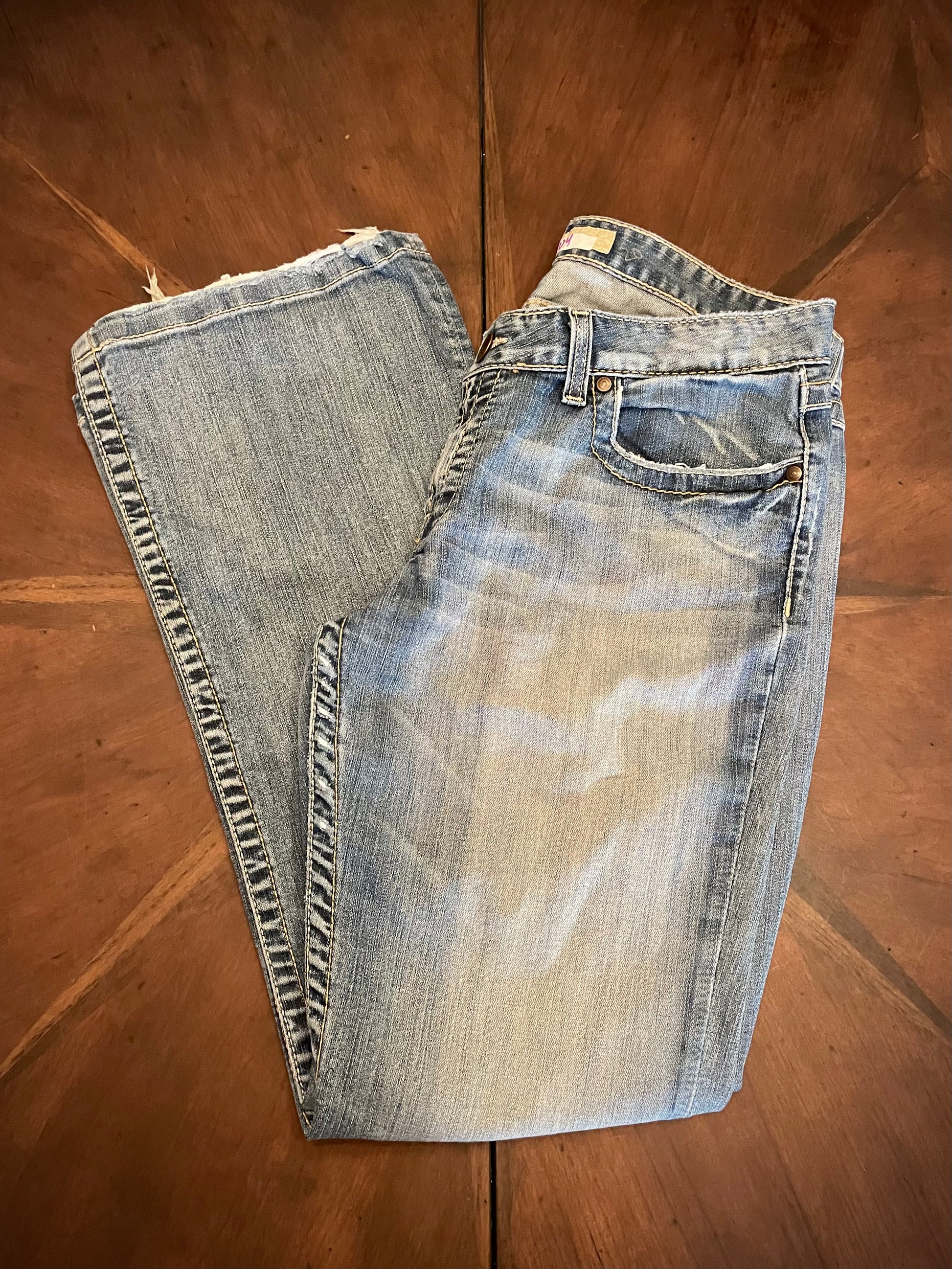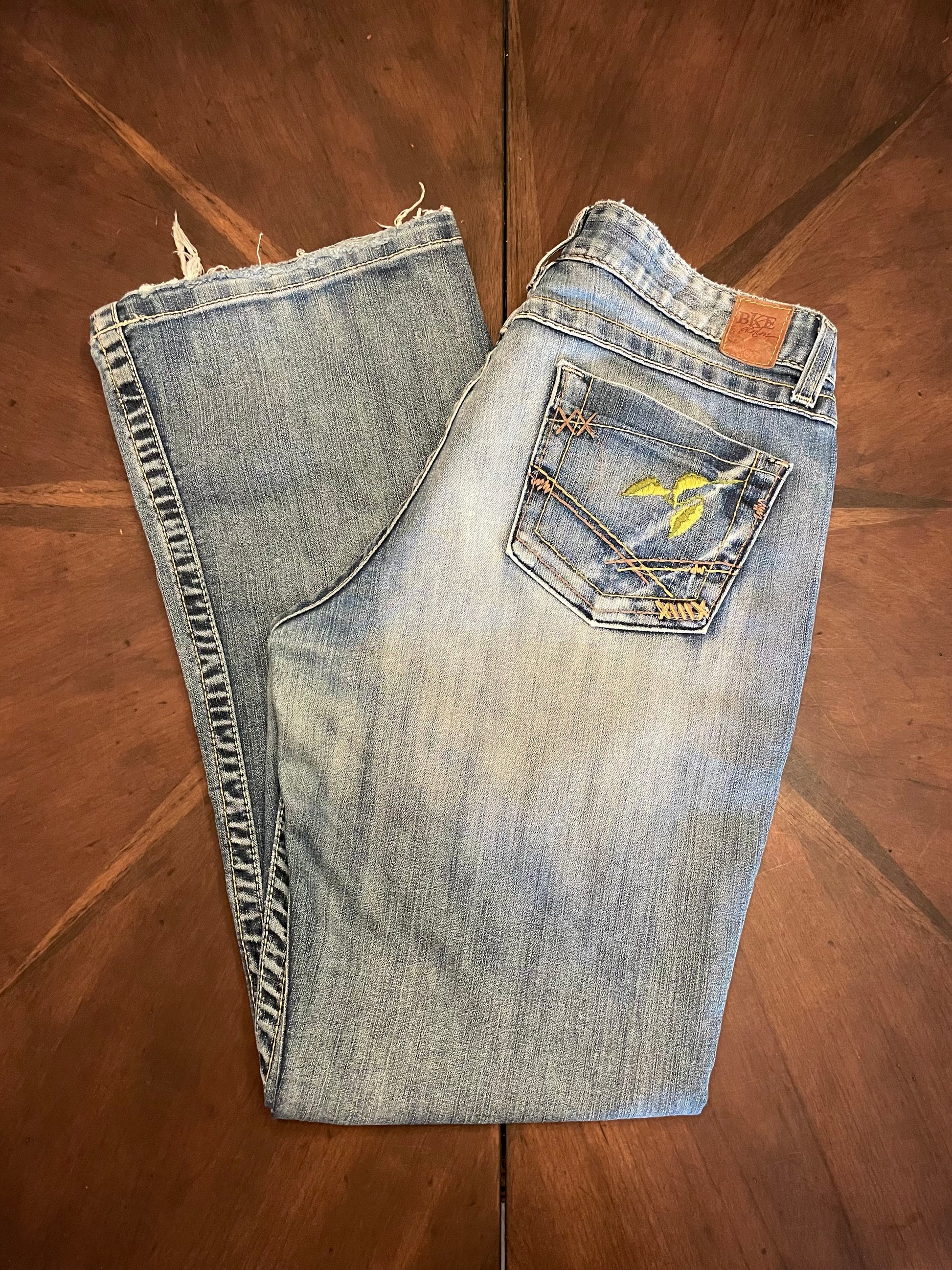 BKE Buckle Distressed Mid-rise Straight Leg Jeans with Lofty Hand-Embroidery