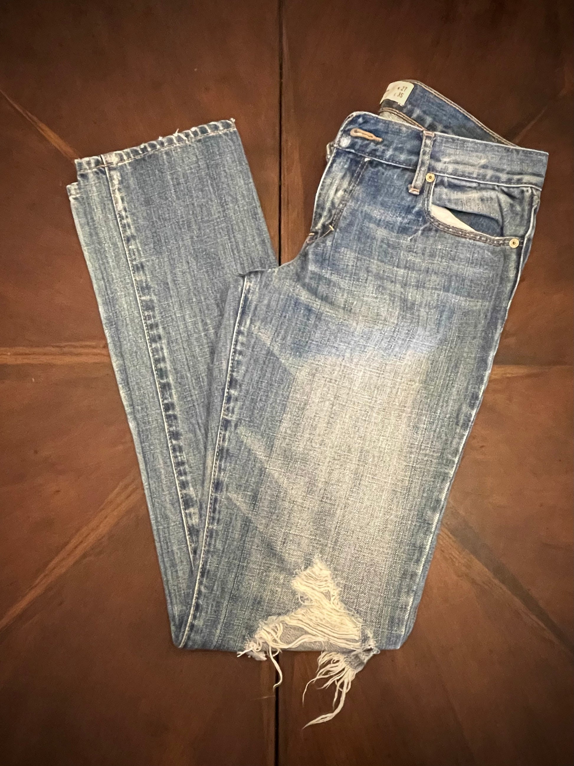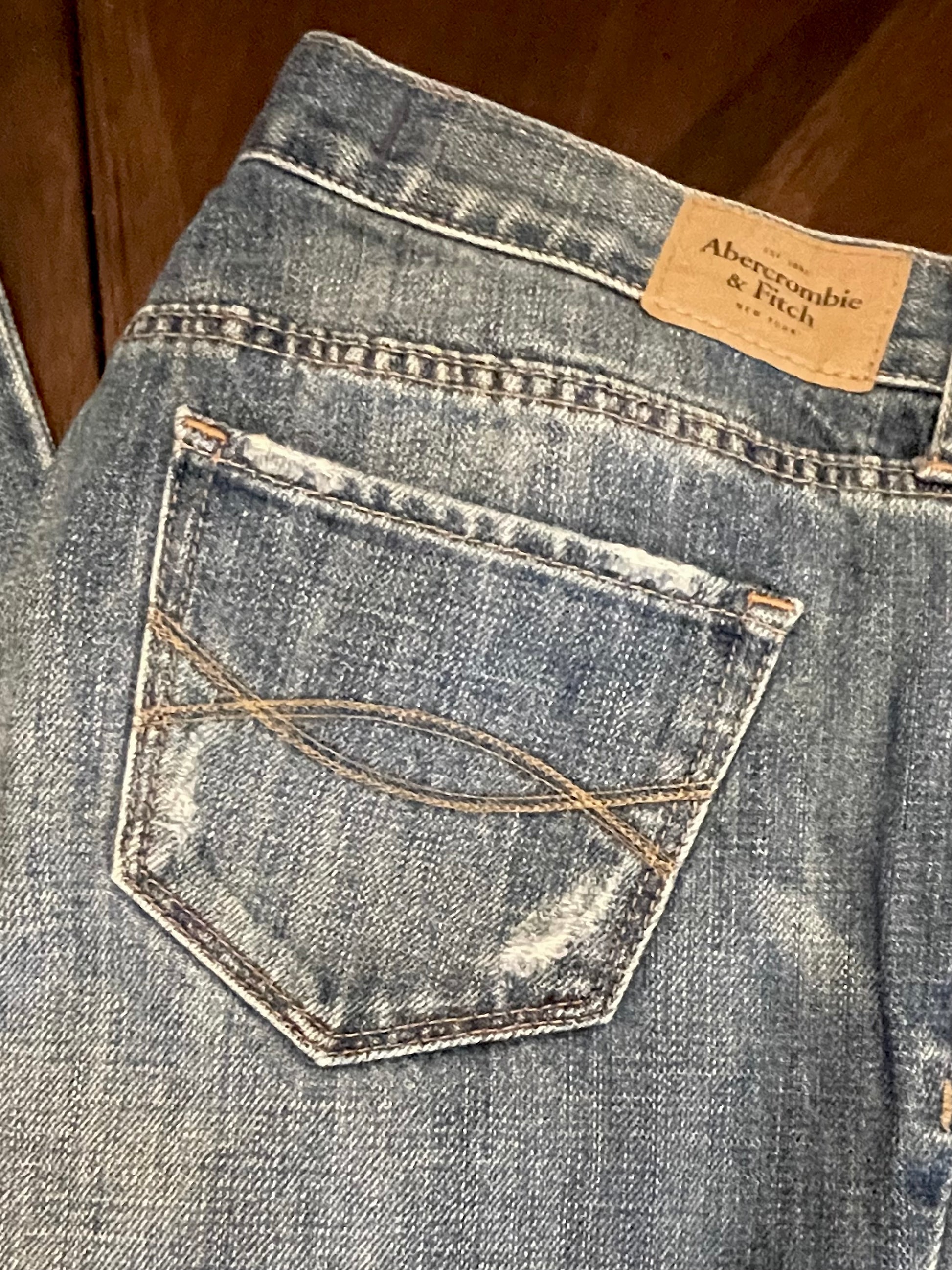 Abercrombie & Fitch Low-Rise Destructed Straight Leg Blue Jeans
