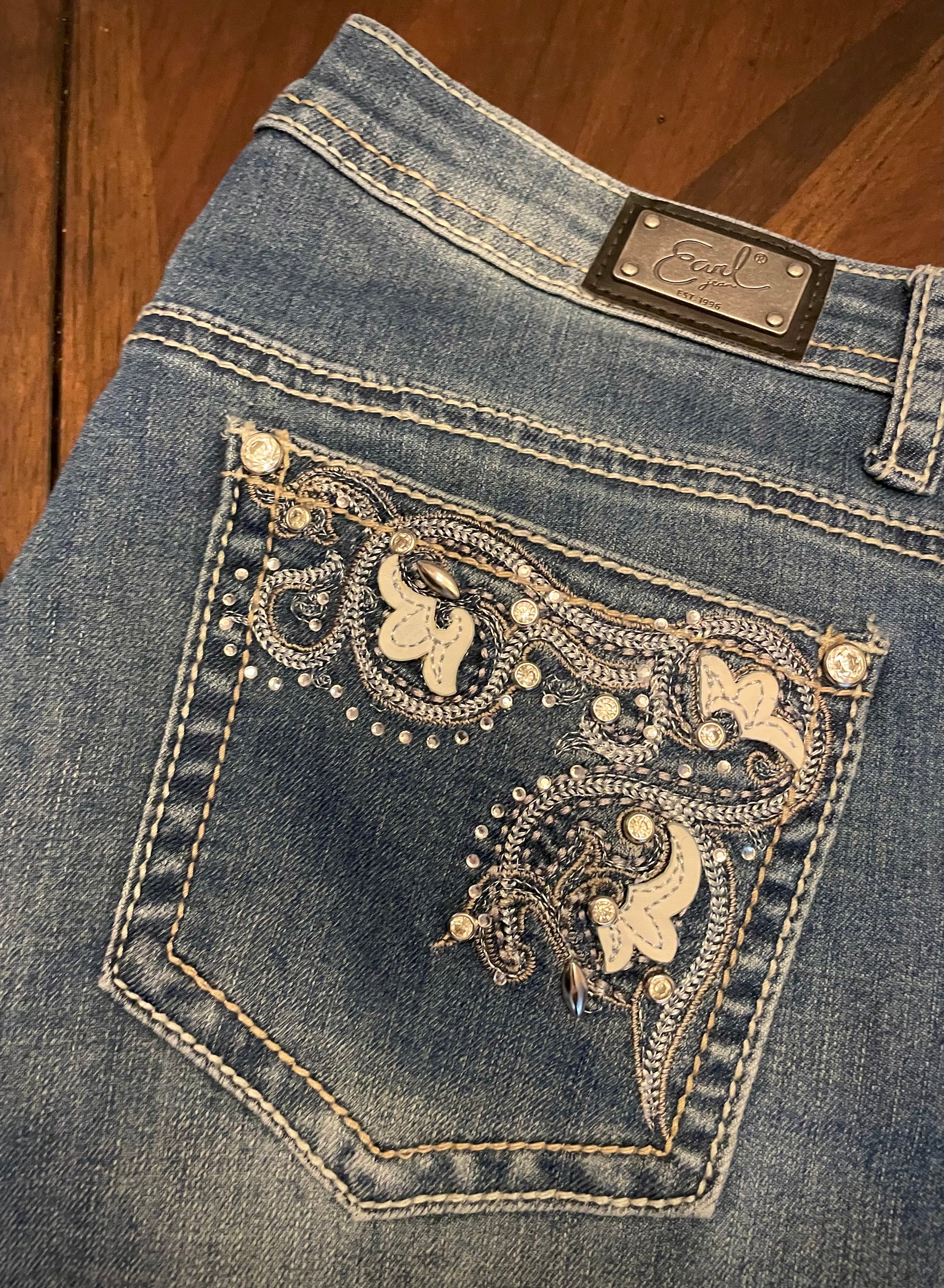 EARL Mid-Rise Skinny Jeans with Lace and Crystal Trim