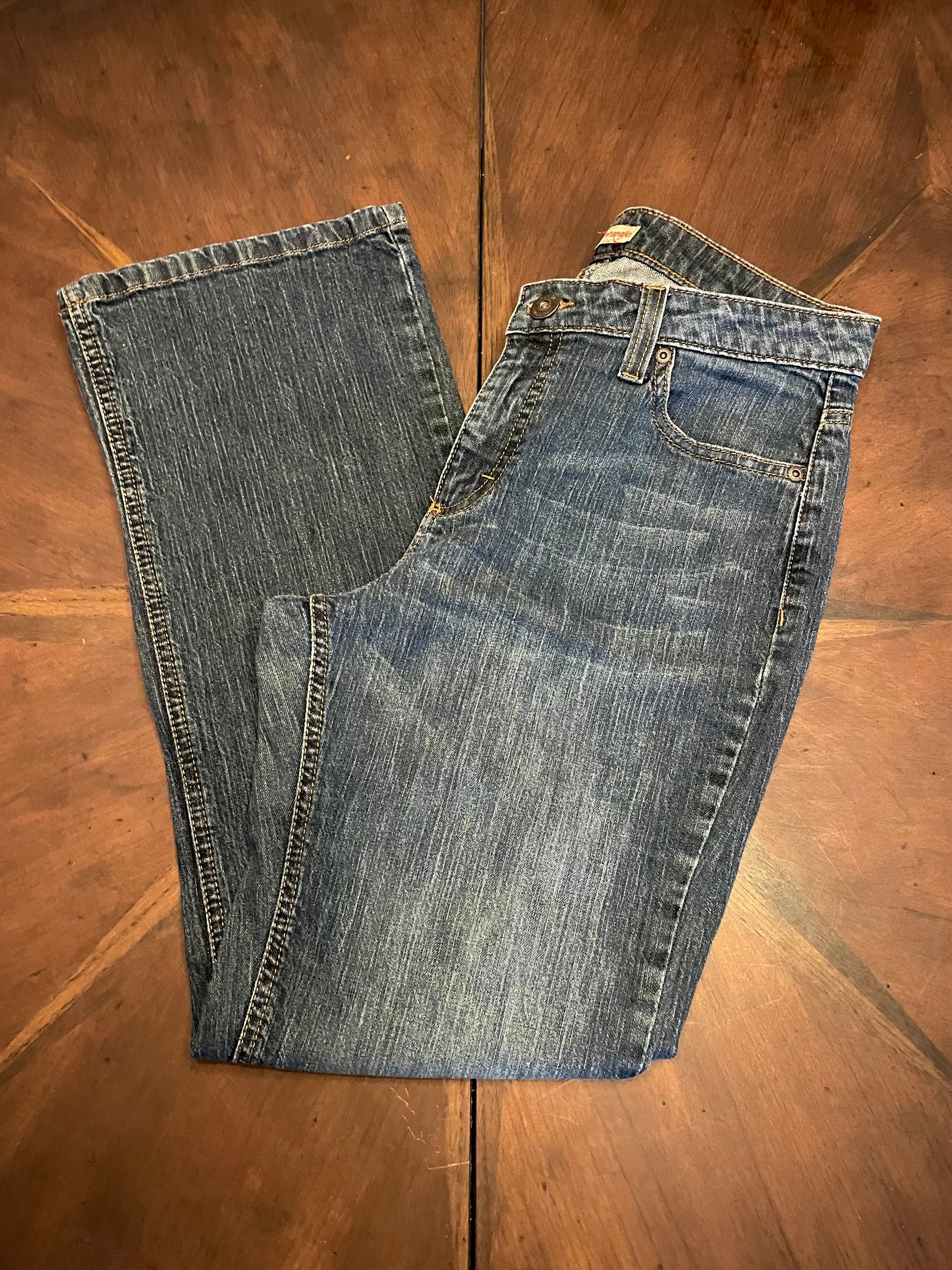 Wrangler 5 pkt Marble Wash Bootcut High-waisted Jeans with Orange Stitching