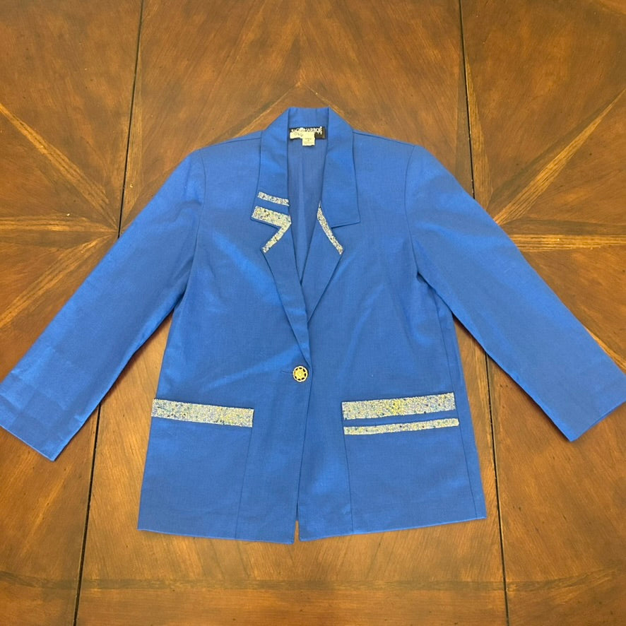 Sag Harbor Petite Royal Single-Breasted Notch Blazer with Sparkle Trim