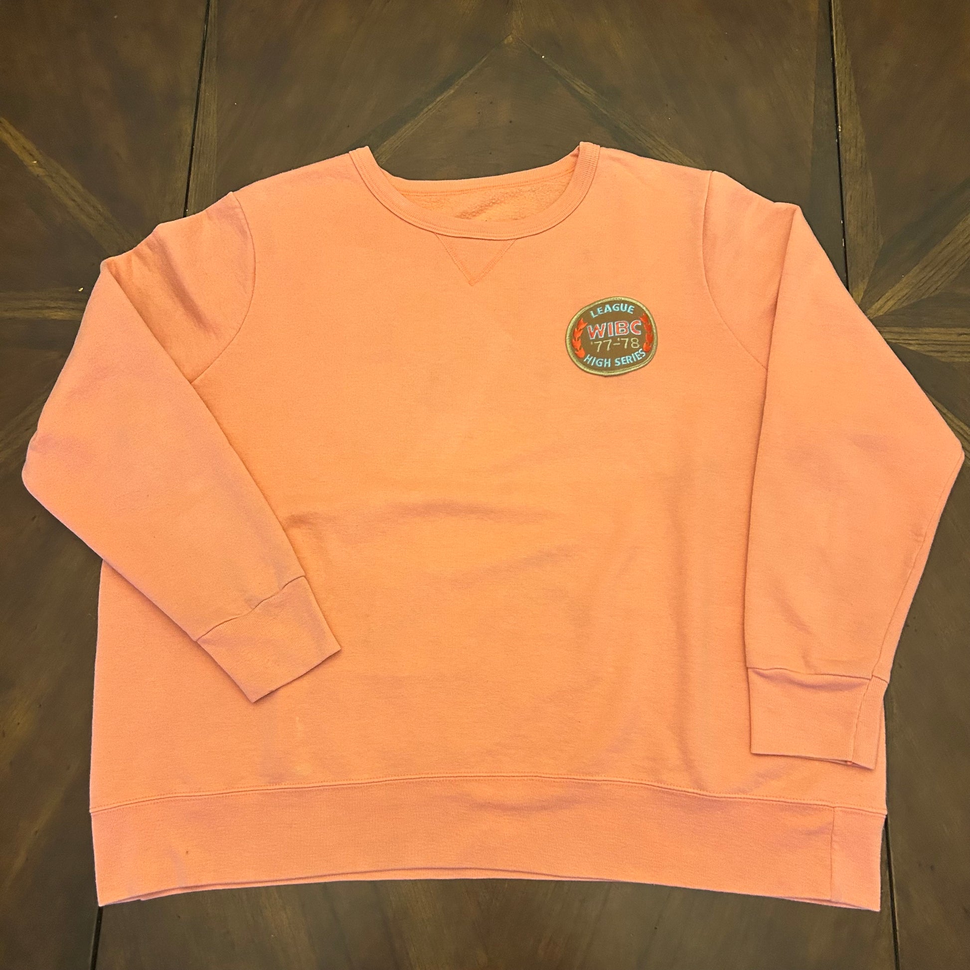 Coral Crew Sweatshirt with Vintage Bowling Patch