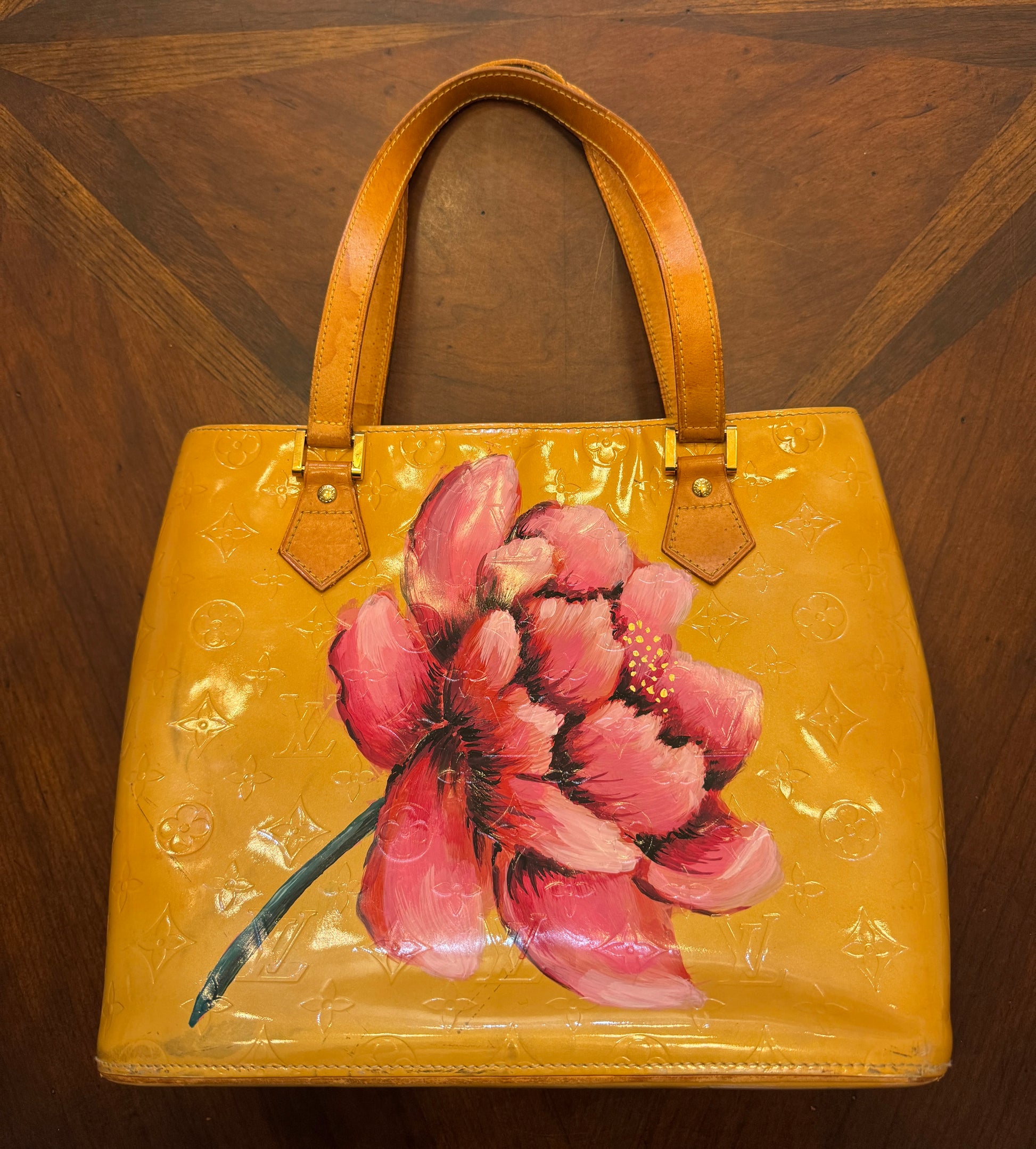 Louis Vuitton Tan Vernis Satchel with Hand-Painted Flower