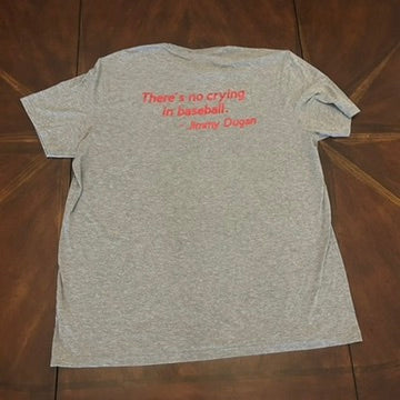 Printed by Sue Levin with quote "There's no crying in baseball."
