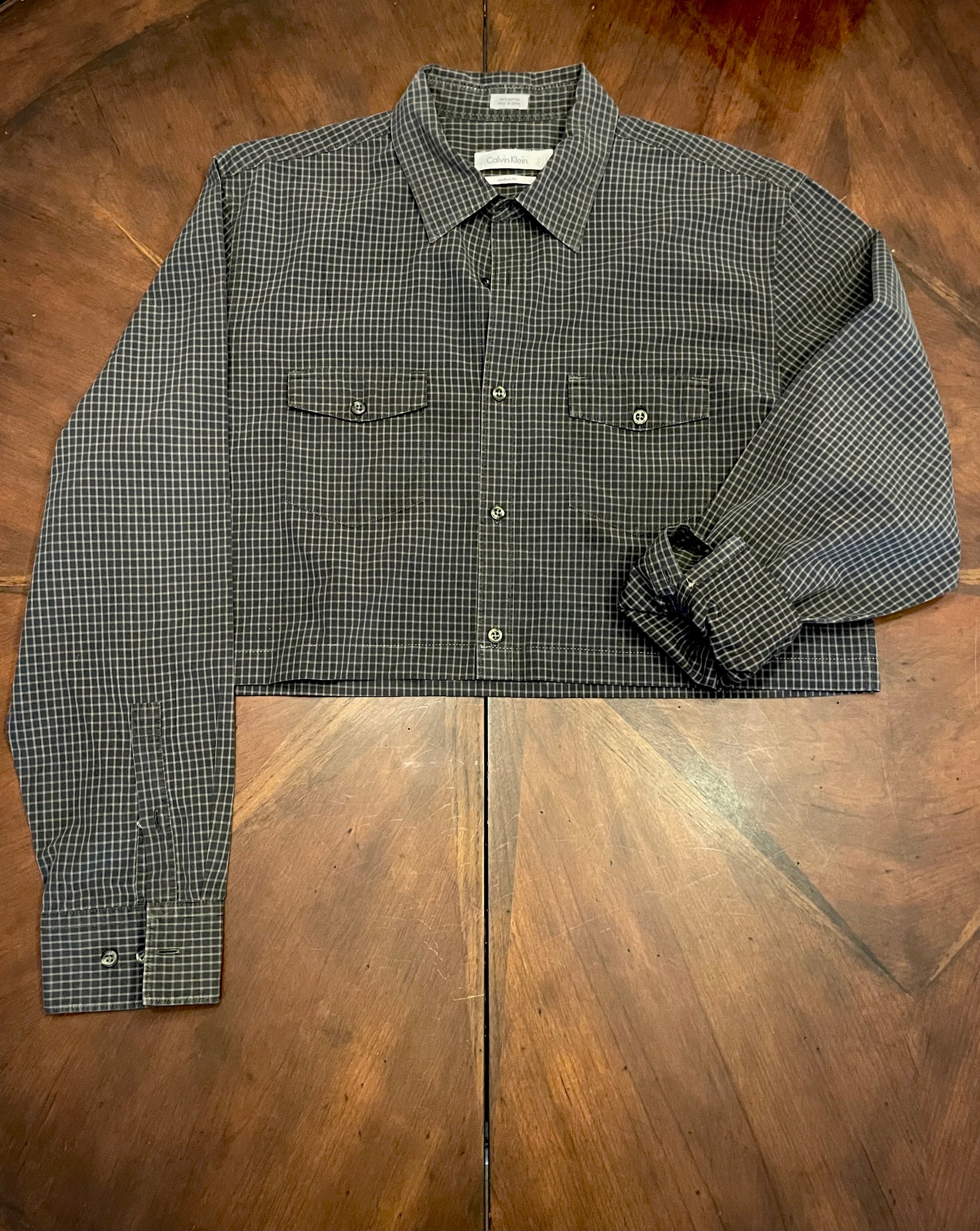 Calvin Klein Grey Tattersall Plaid Cropped Shirt