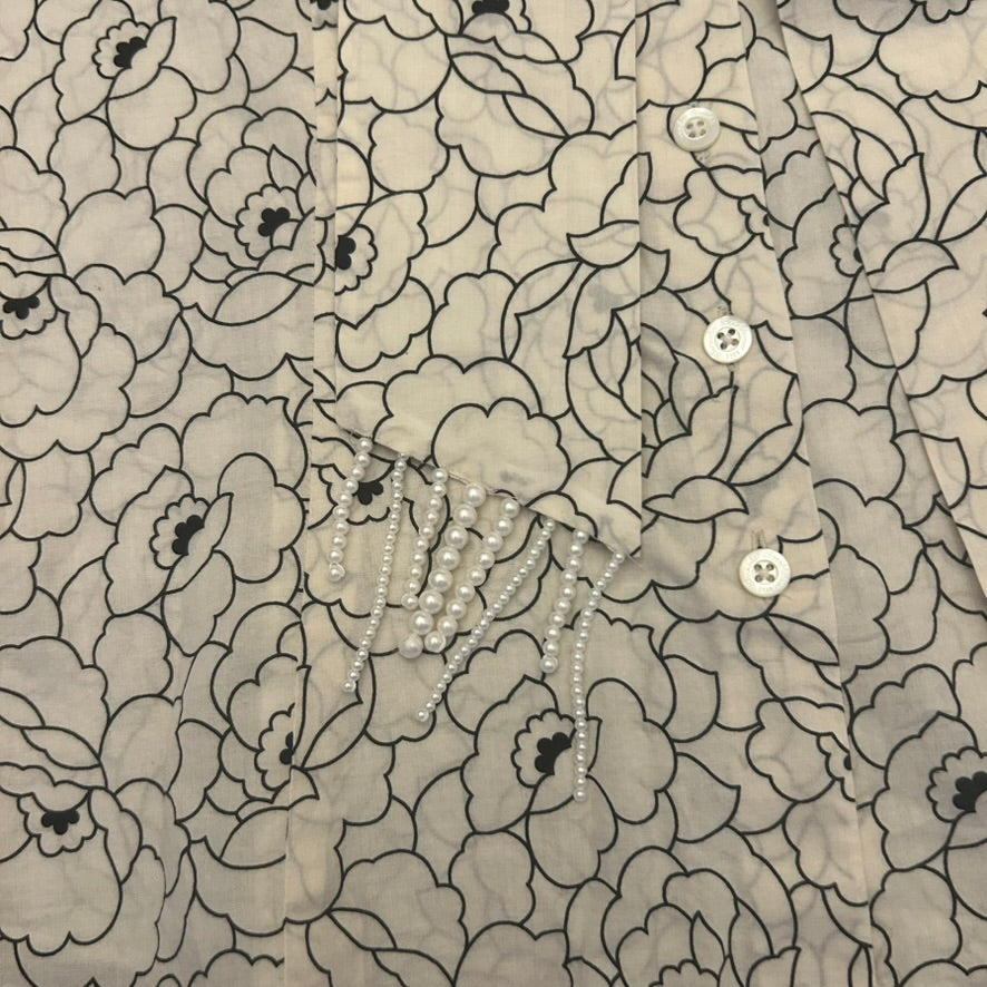 Brooks Brothers Rose Print Short-Sleeve Blouse with Pearl Tie