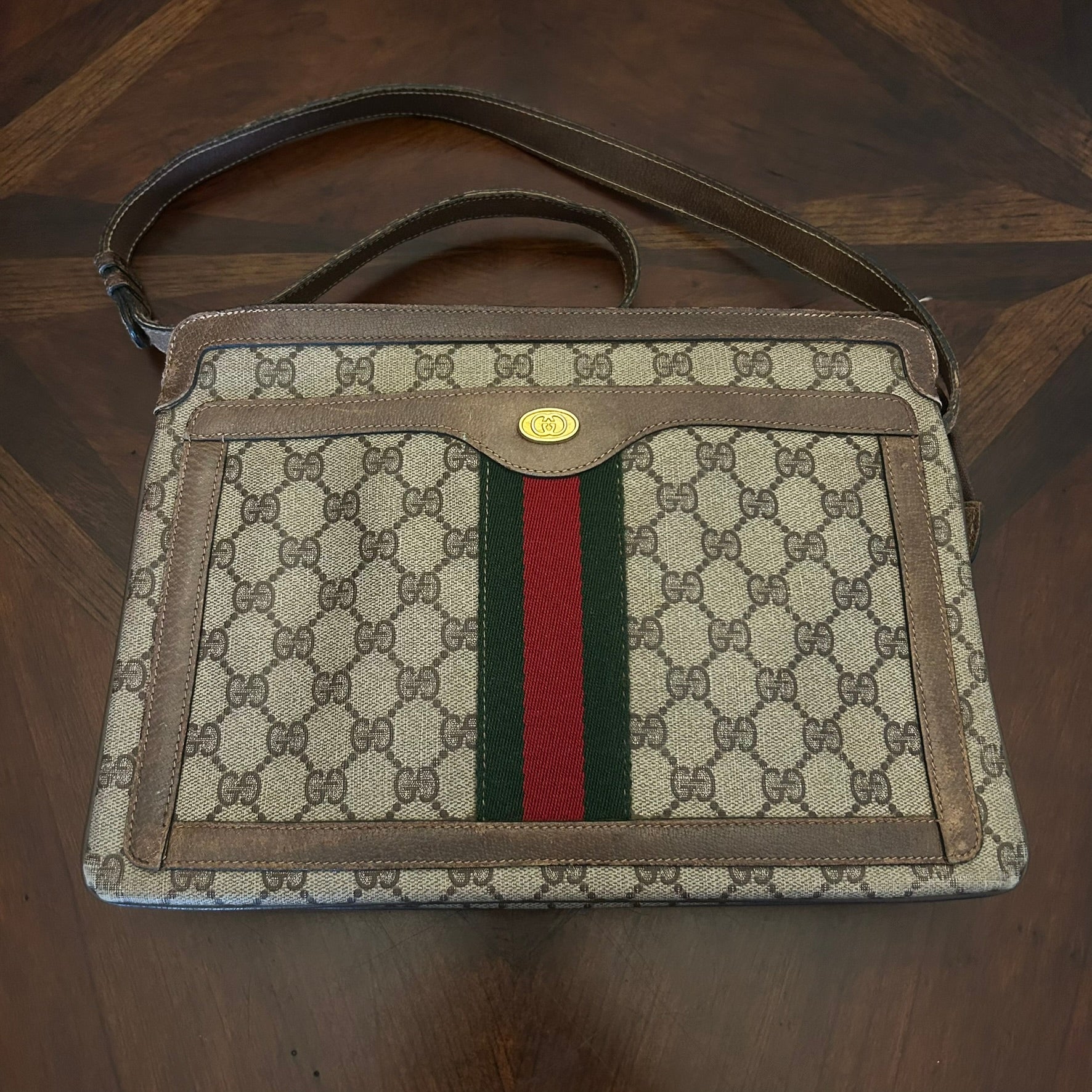 Gucci Brown Logo Vintage 1980s Shoulder Handbag with Exterior Pocket