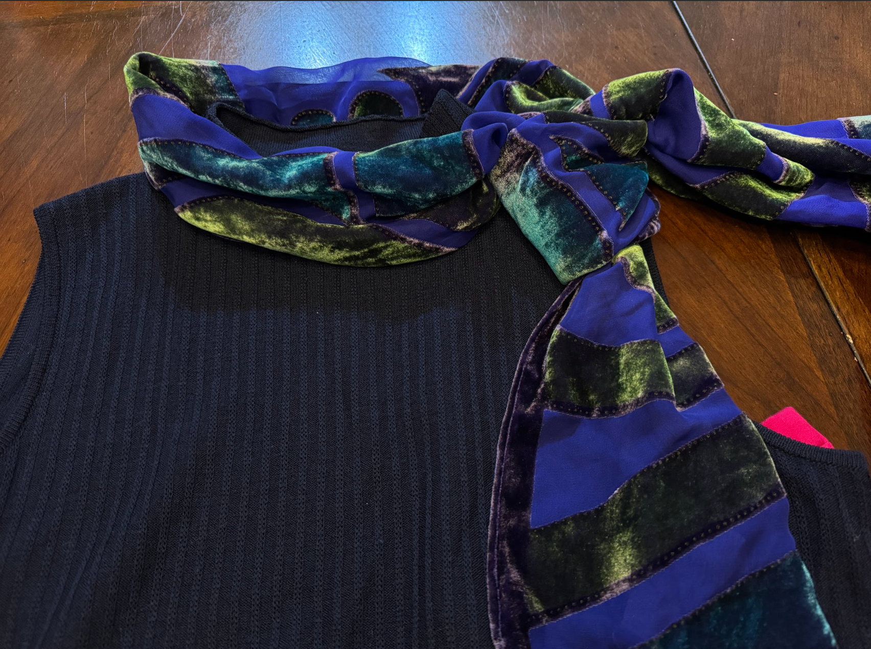 St. John Navy Mock Sleeveless Sweater with Velvet Scarf