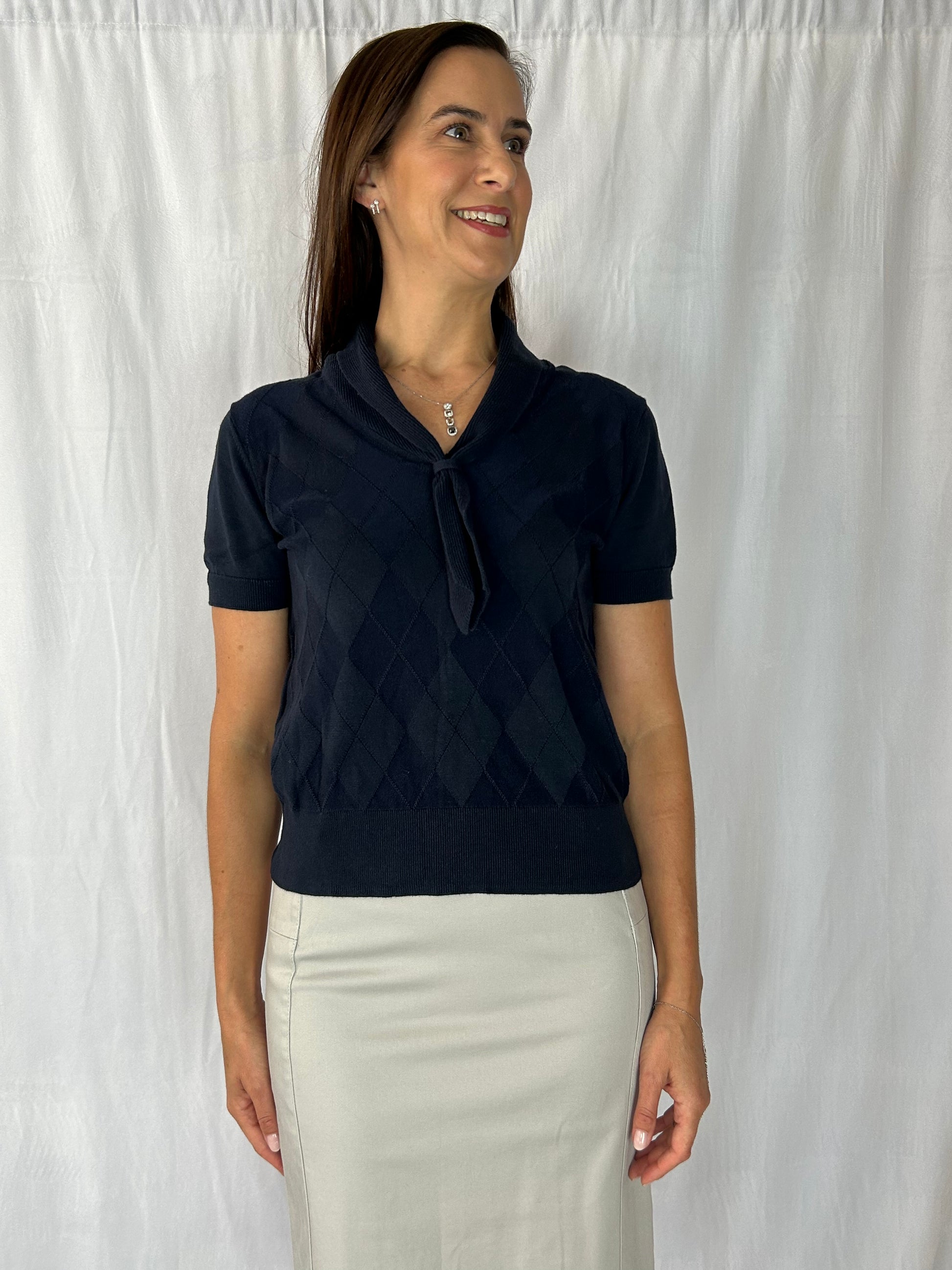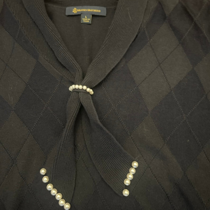 Brooks Brothers Short Sleeve Shawl Neck Sweater with Added Pearl Details