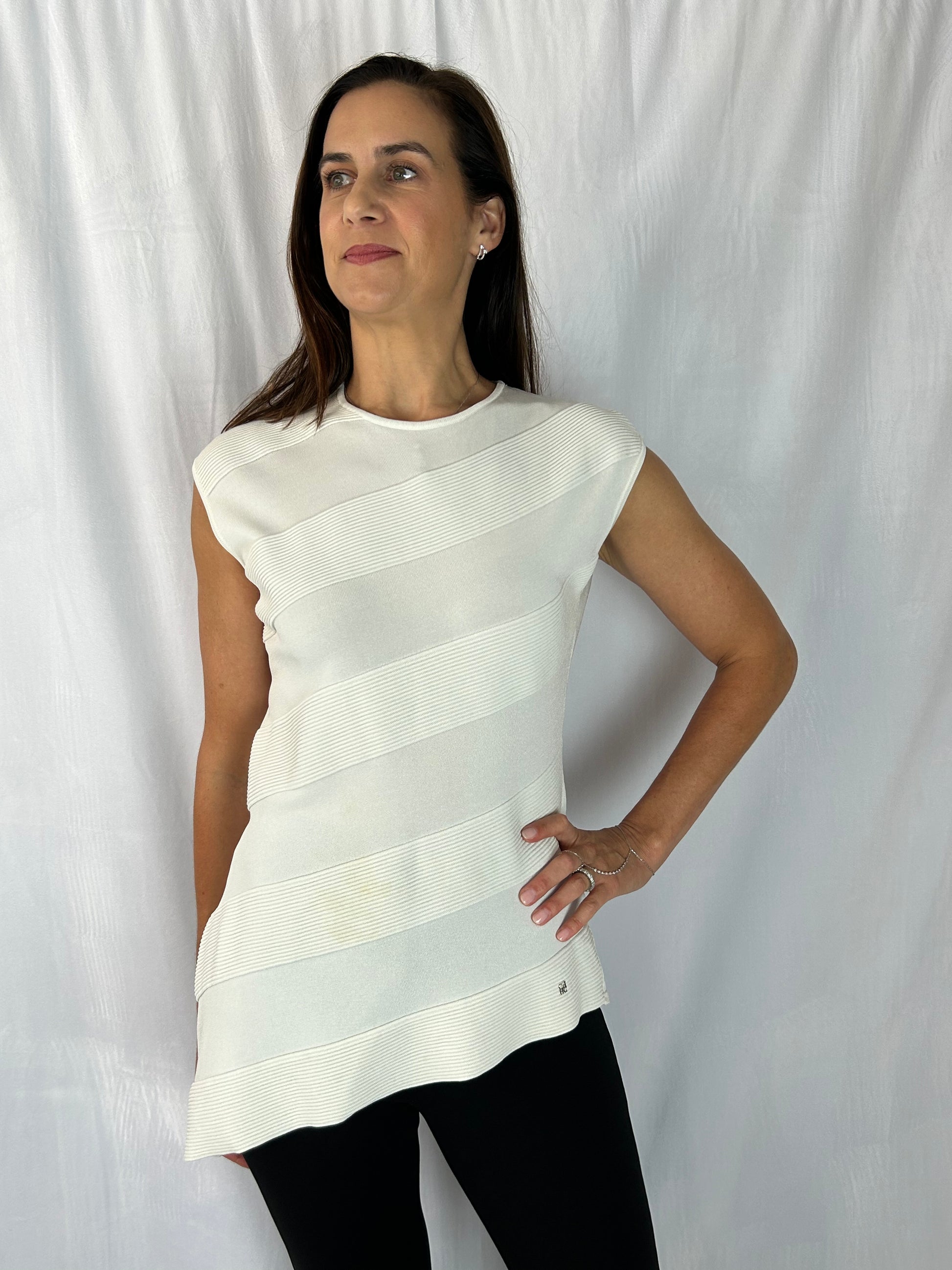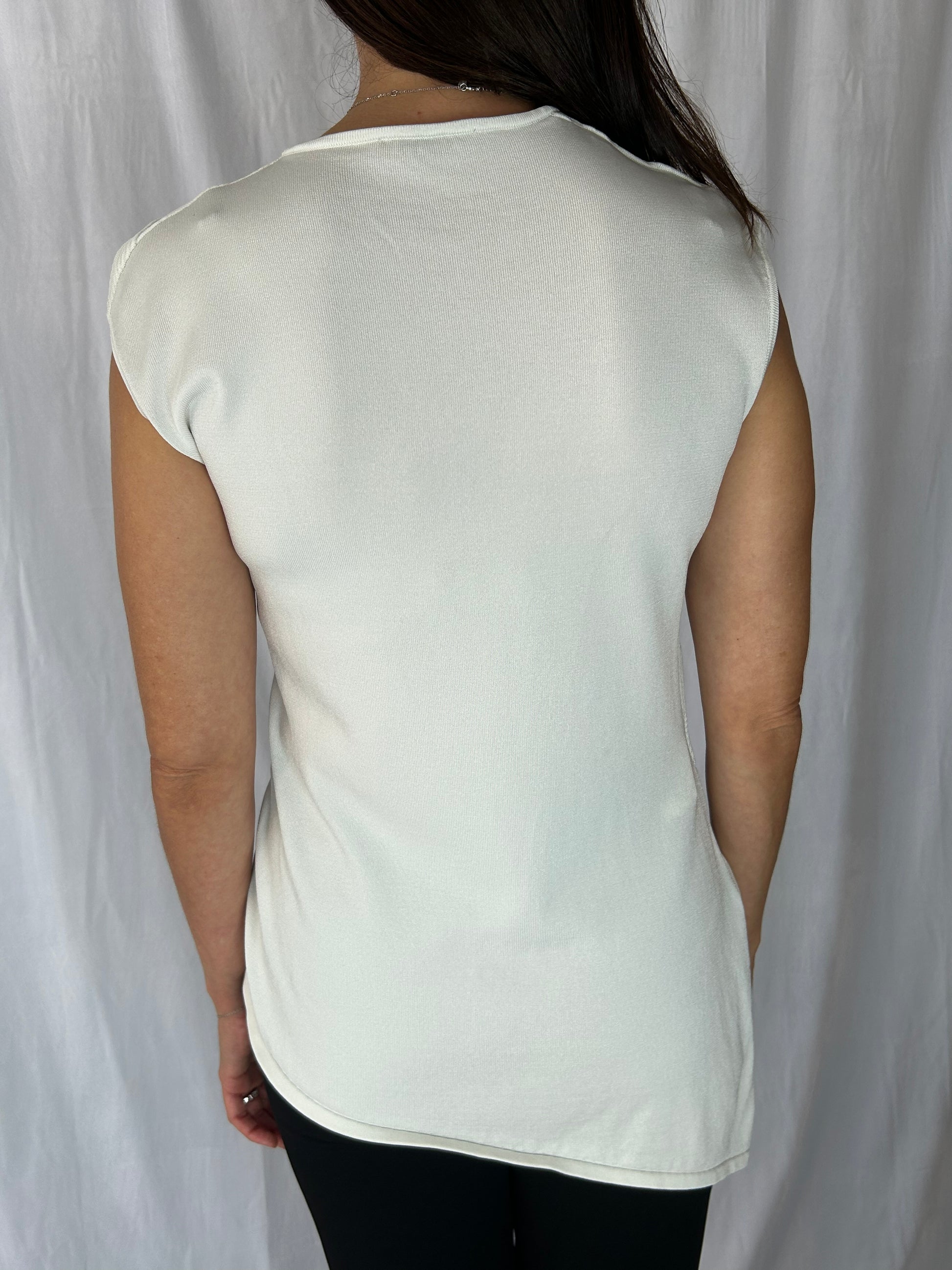 Carolina Herrera Ivory Sleeveless Jewel Sweater with Assymetrical Hemn