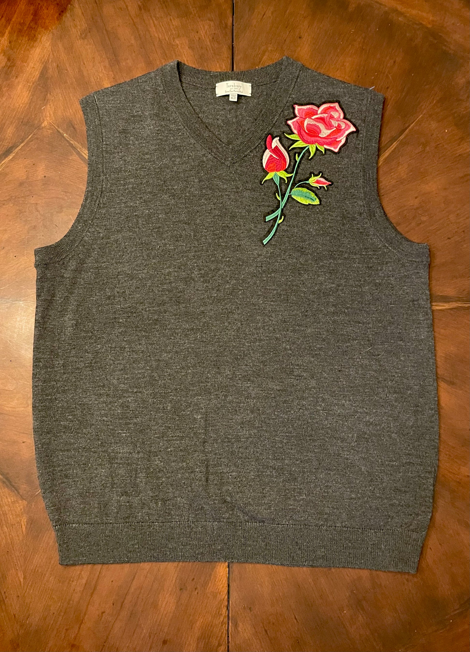 Turnberry Grey V-Neck Vest with Rose Appliqué
