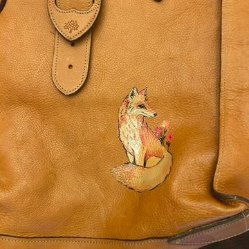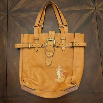 Mulberry Tan Leather Tote with Hand-painted Fox