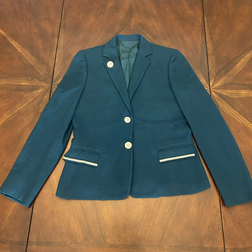Petite Turquoise Blazer with Decorative Buttons and Pocket Borders