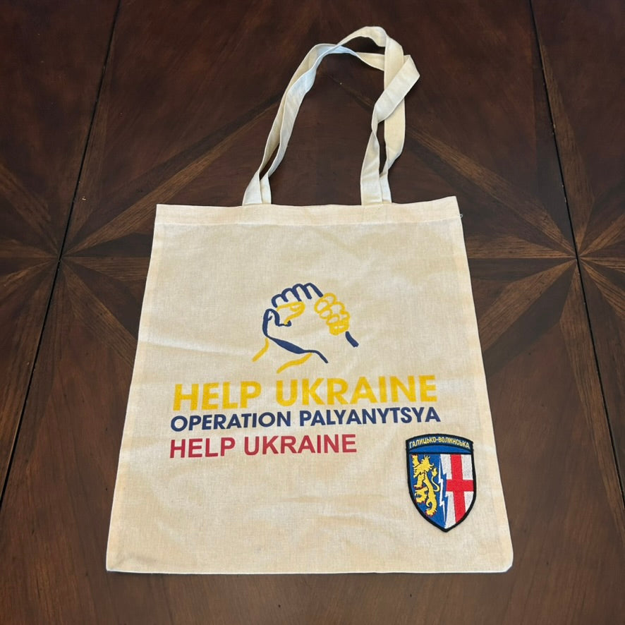 Help Ukraine Canvas Tote with Vintage Patch